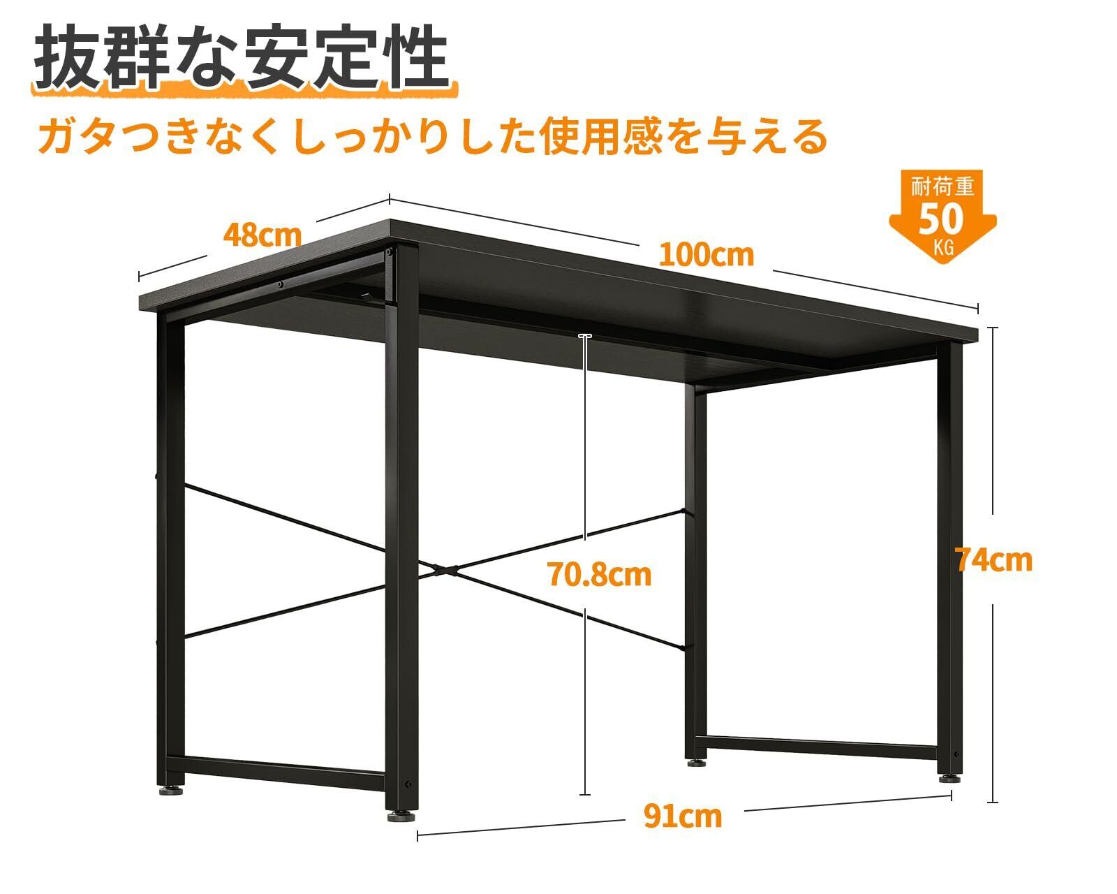 【商品仕様】シンプルでインテリアに馴染むおしゃれなデスクです。◆本体サイズ:幅100×奥行48×高さ74CM | 本体重量:7KG | 日本語組立説明書あり | お客様組立て品で、レンチも付属しており、別途で工具を買う必要がないです。