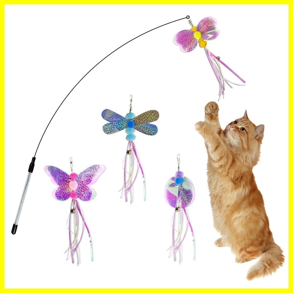 猫じゃらし 5点セット 猫おもちゃ 羽のおもちゃ 鈴付き 羽 ねこ おもちゃ 蝶々 虫 歯磨き 運動不足解消 ストレス解消 ペット用品 猫用品