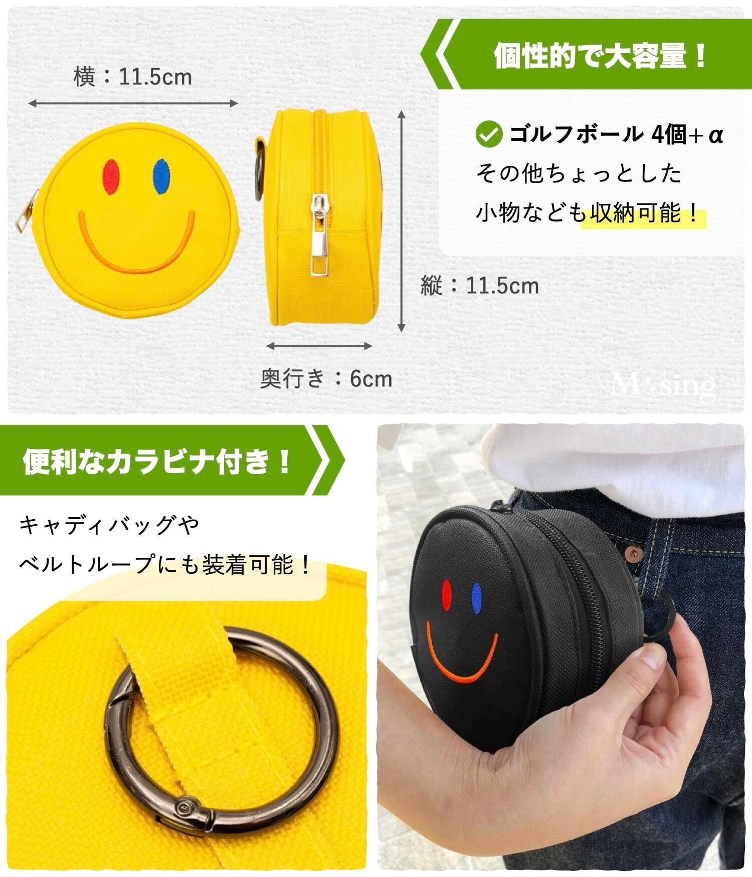 ️【機能性とカラー】スムーズ開閉のシッパー仕様で、最大4個のゴルフボールが収納できます◎ ベルト装着&カナビラ装着できるループ付きの2WAY!カラーは、ホワイト、イエロー、ブラックをご用意しましたスタイルに合わせてチョイスを◎
