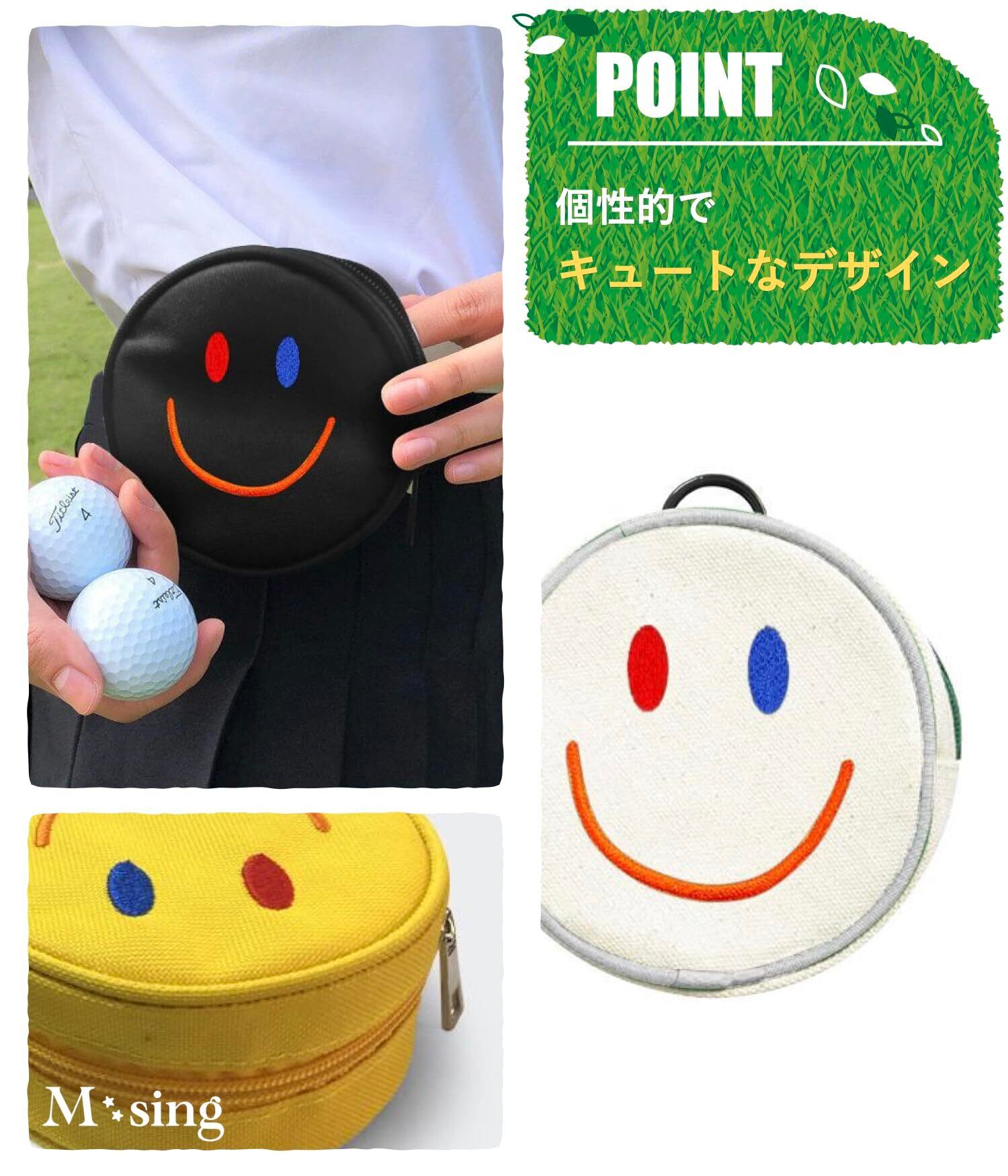 [エムシング] ゴルフボールケース 小物入れ ボール入れ ゴルフ ボールポーチ かわいい プレゼント ニコちゃん
