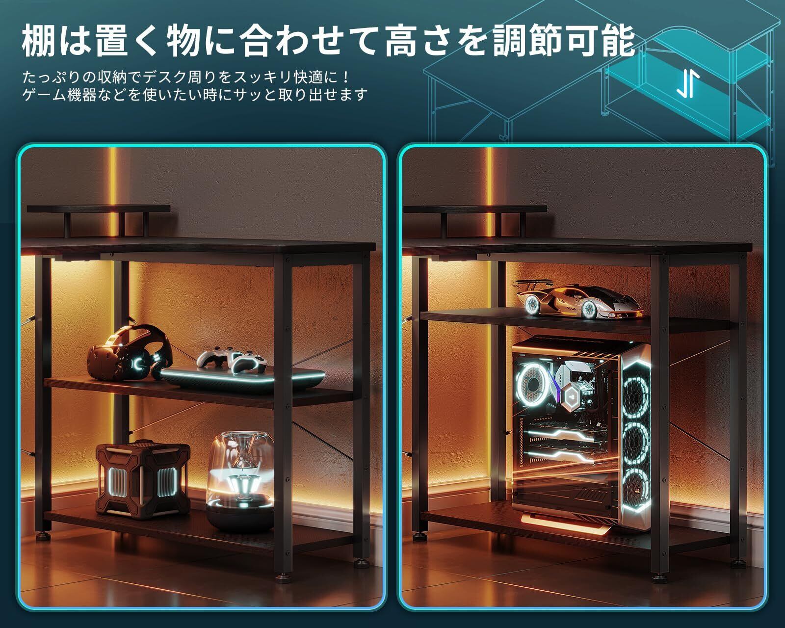 【ゲームと仕事両立】L字ゲーミングデスクは実用性が高く、ゲームプレイ、在宅勤務、書斎机、勉強机など様々なシーンで大活躍!モニター台を利用して目線をあげることで、作業時の姿勢を改善し、テレワークが快適になり、作業効率も格段に上がります。