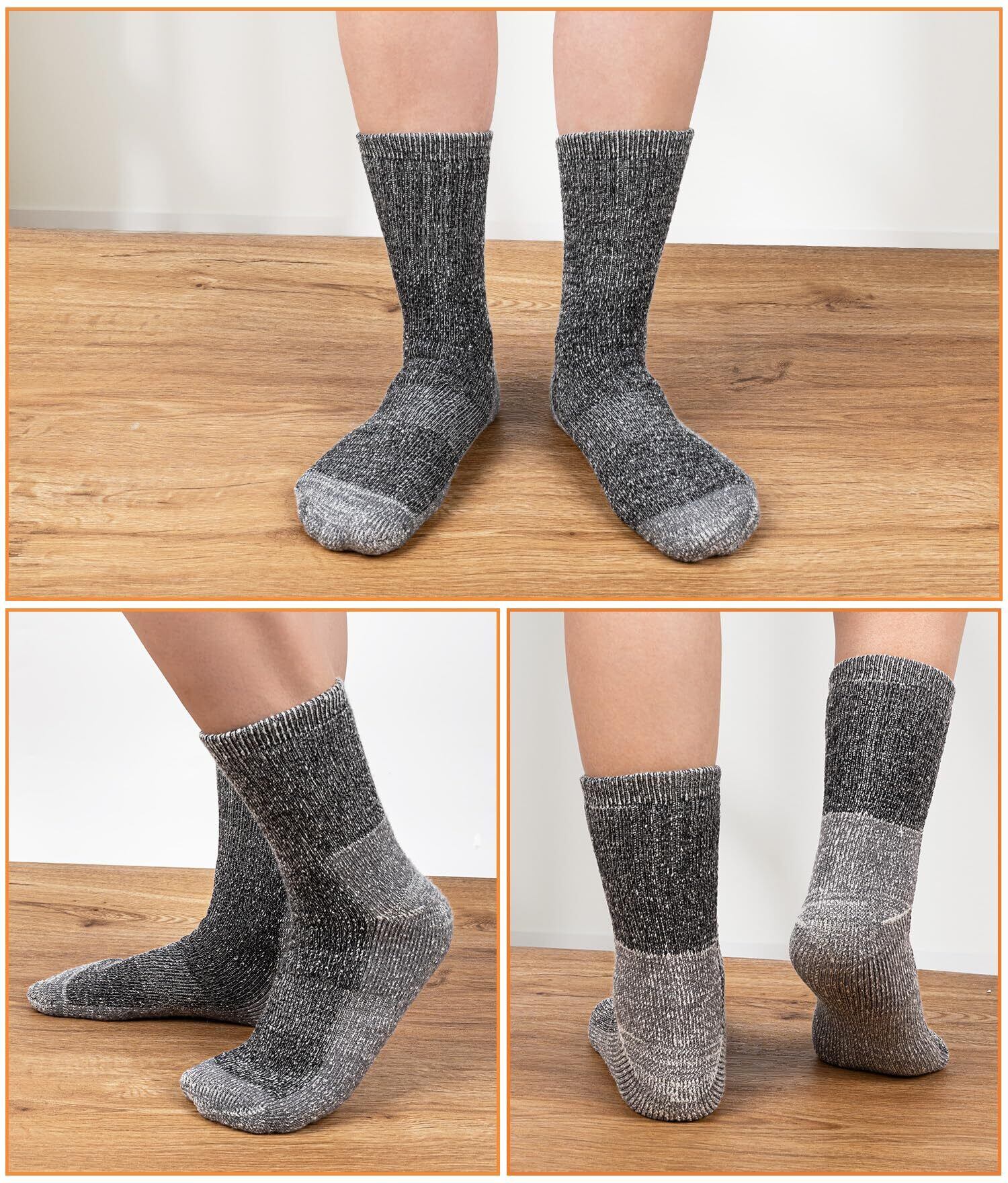「氷点下でも着た瞬間から暖かい!」:この防寒靴下は天然メリノウールを使用しており、一本一本の繊維が複雑に絡み合い、その間に空気を留めることで高い保温性と断熱性を発揮してくれて、暖かさが着た瞬間から感じられます。柔らかい裏起毛は通常の冬用靴とほぼ同じ驚異の厚さで、保温性をさらに高め、極寒の中でも足首からつま先を包み込むじんわりとした暖かさが長時間持続します。