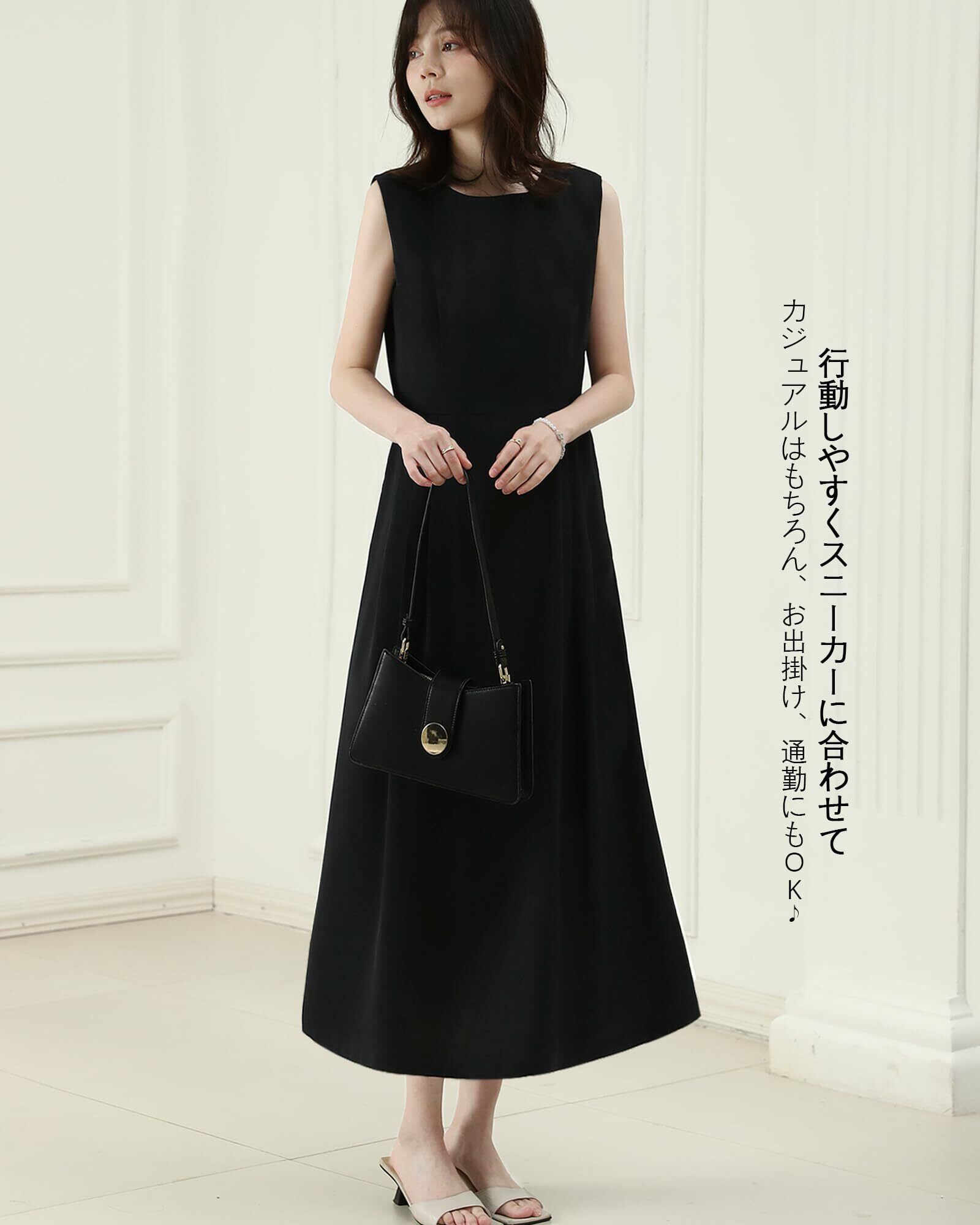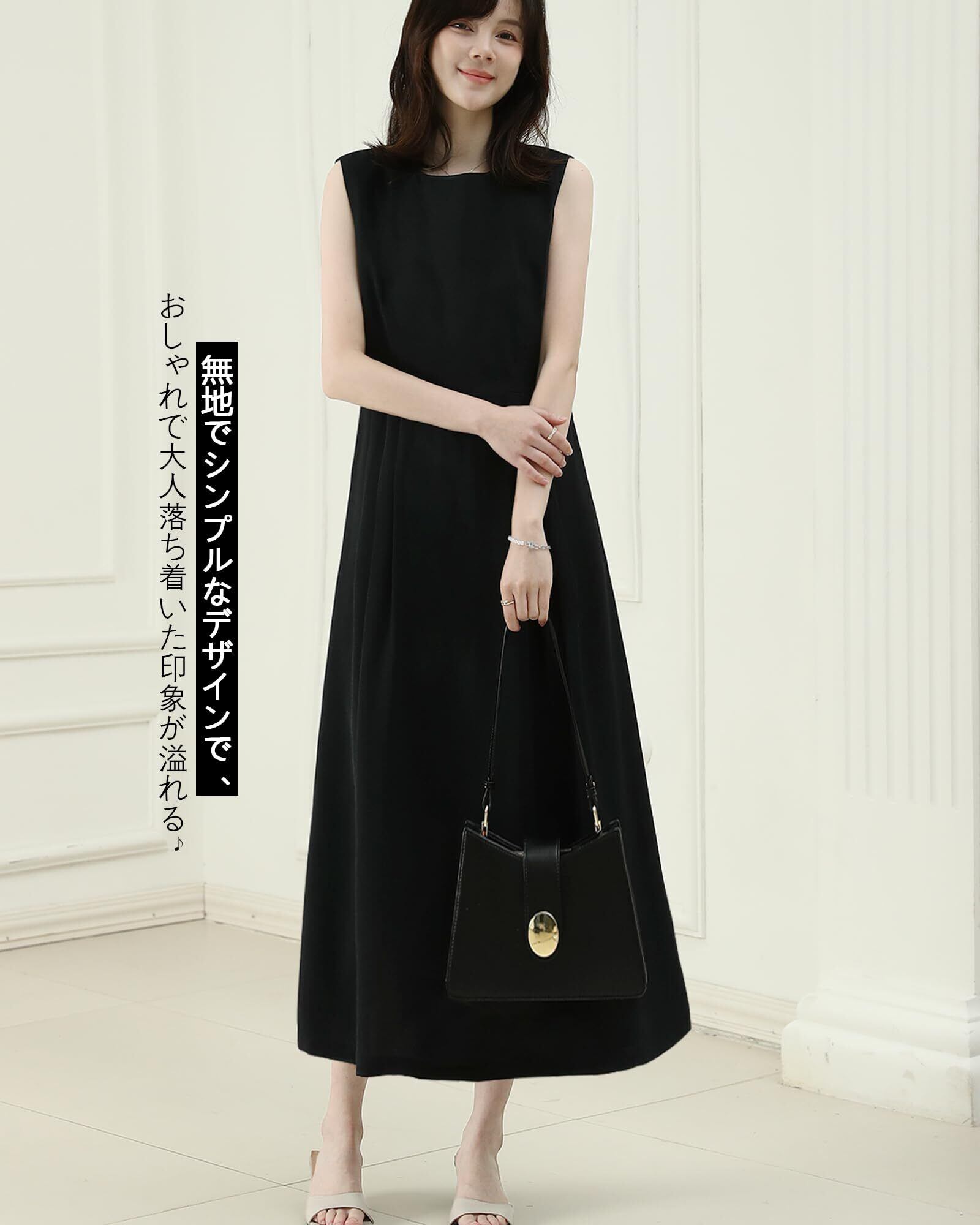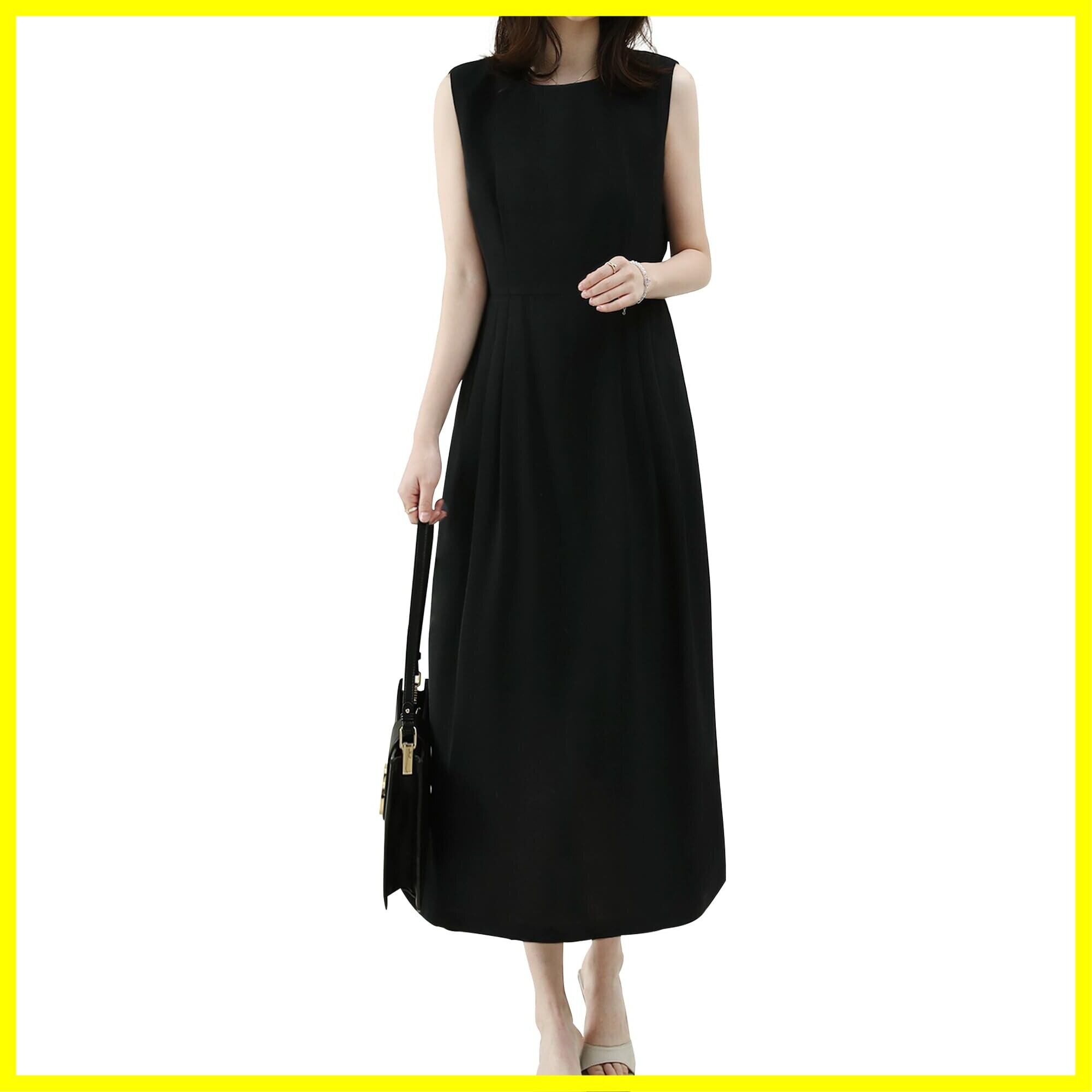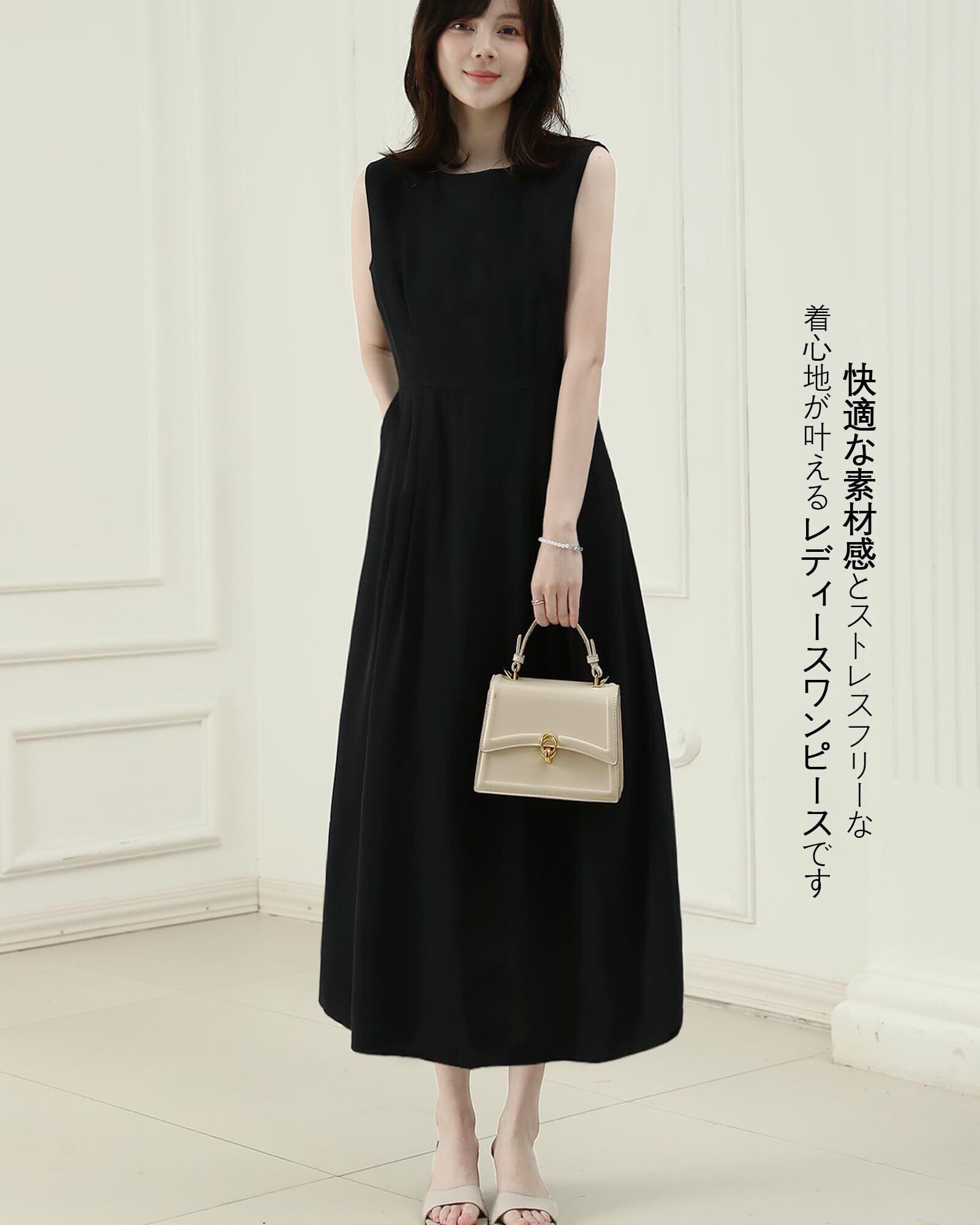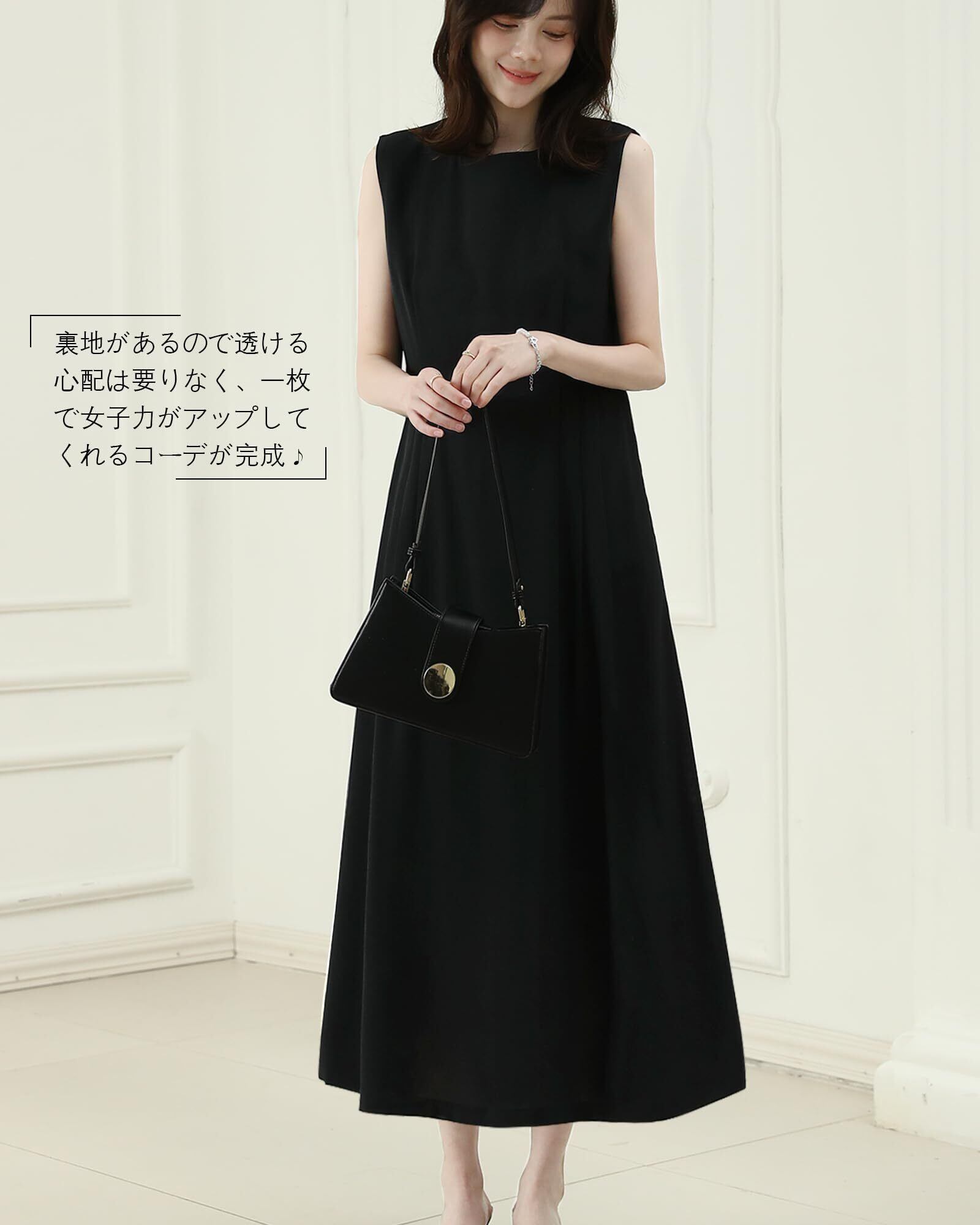 [Bidason] ワンピース レディース ロング ノースリーブ 涼しげ エレガント 無地 シンプル 大人 おしゃれ ゆる感 体型カバー 裏地付き ファスナー 着やすい 普段着 カジュアル 通勤 夏