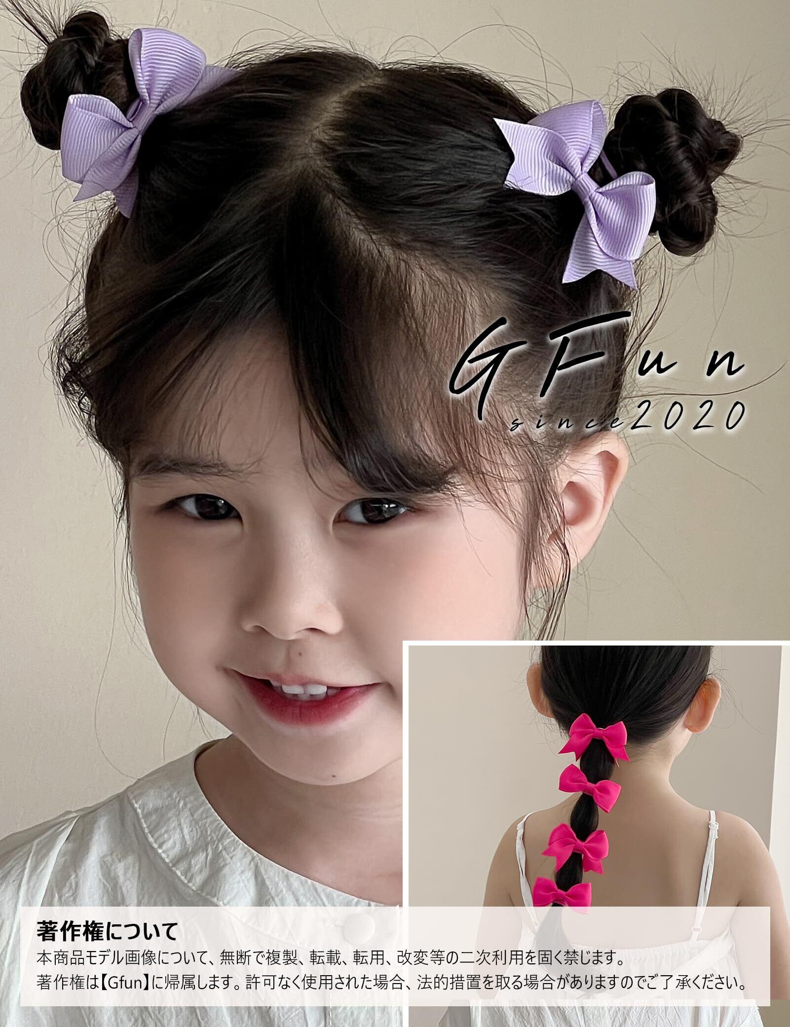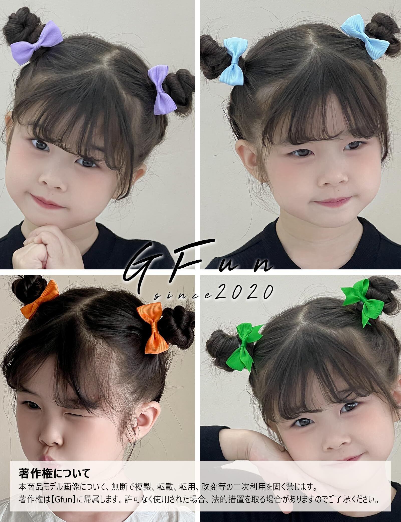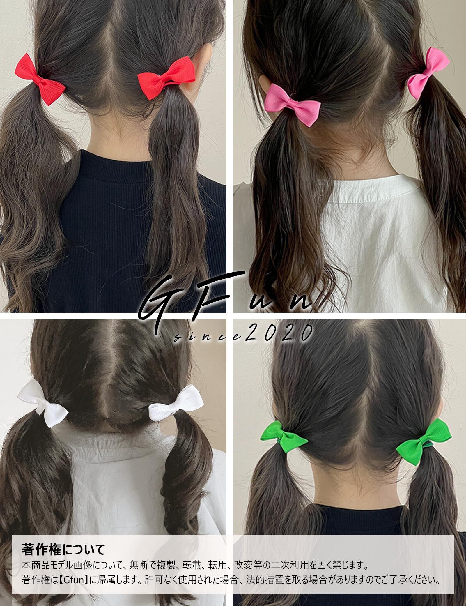 GFun ヘアゴム 子供 リボン 4枚セット 可愛い 髪ゴム ヘアアクセサリー 入園式 入学式 卒園式 発表会 浴衣 洋服 オレンジ