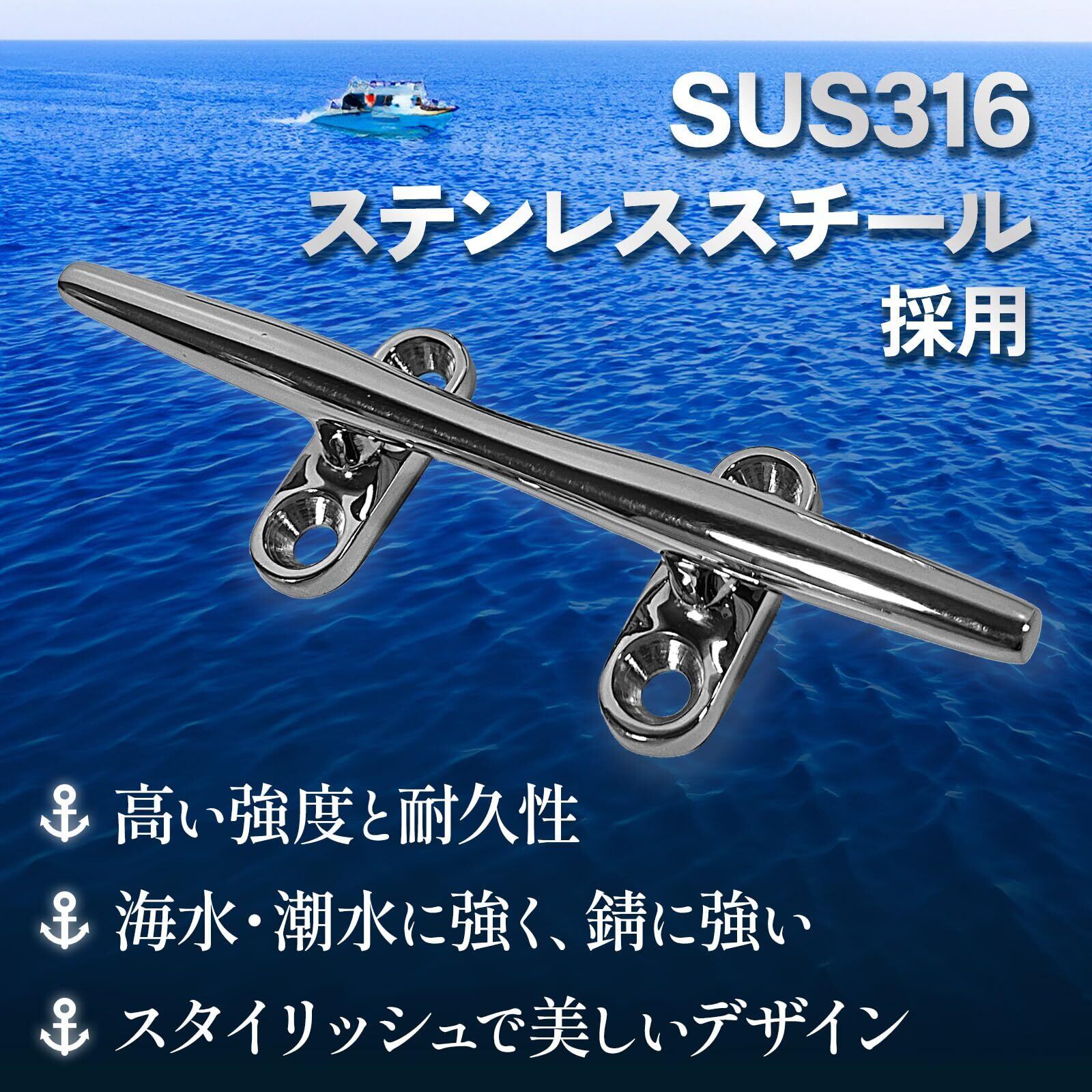 【頑丈で耐久性があるステンレス製の4点止めクリート】 クリートは船をしっかりと停留するために高い強度と耐久性が求められます。ステンレス製のクリートは腐食に強く、長期間使用しても劣化しにくい特性があります。