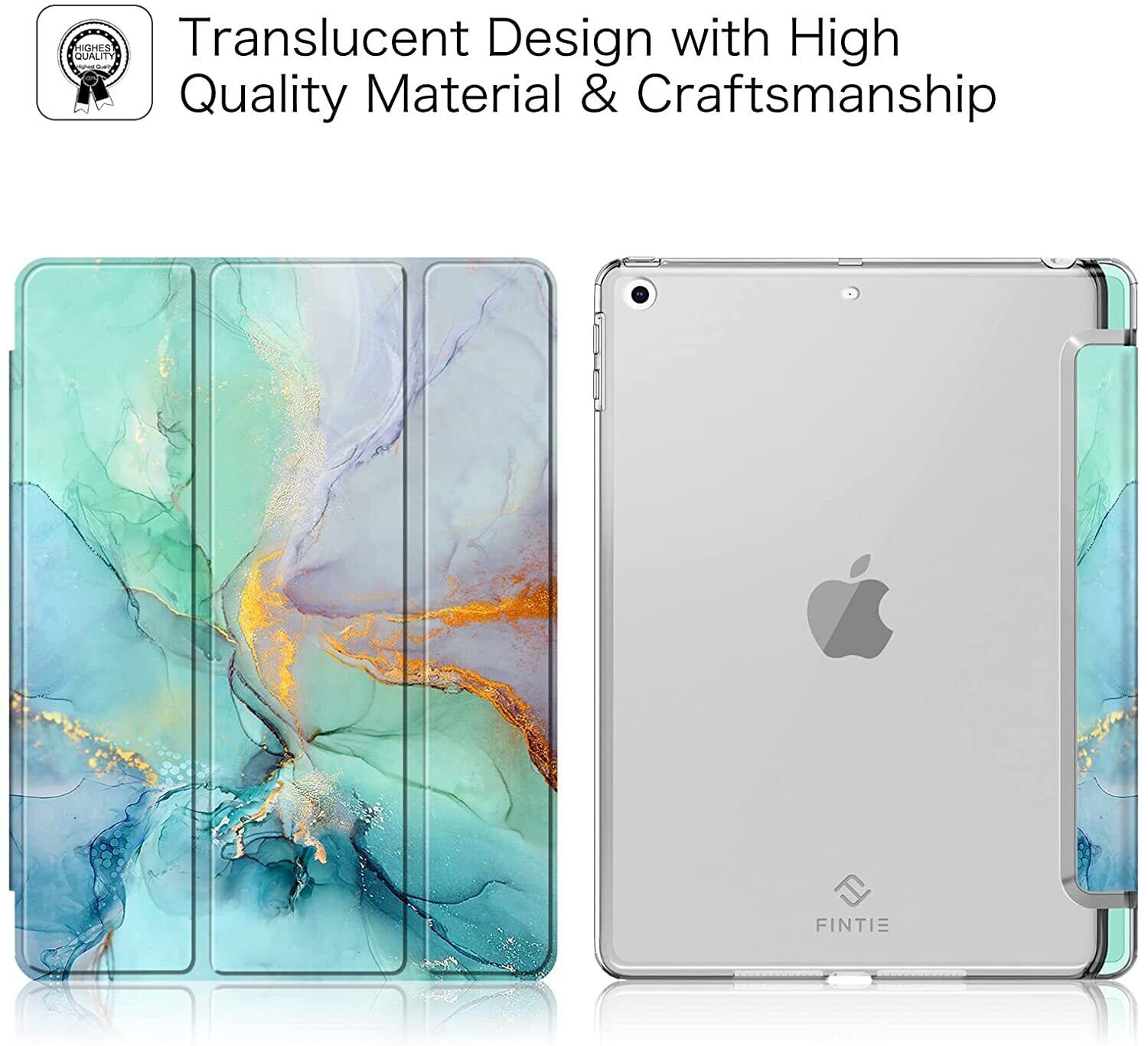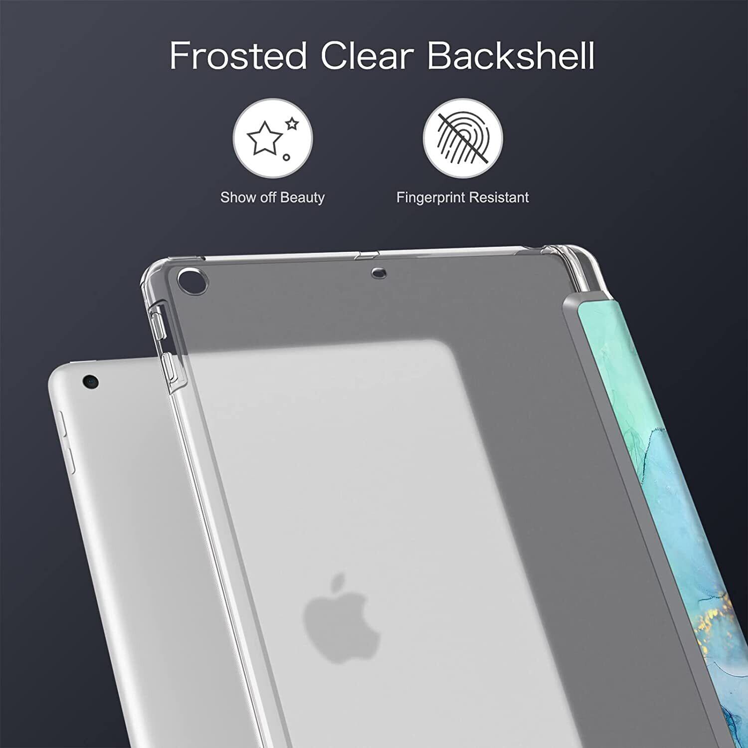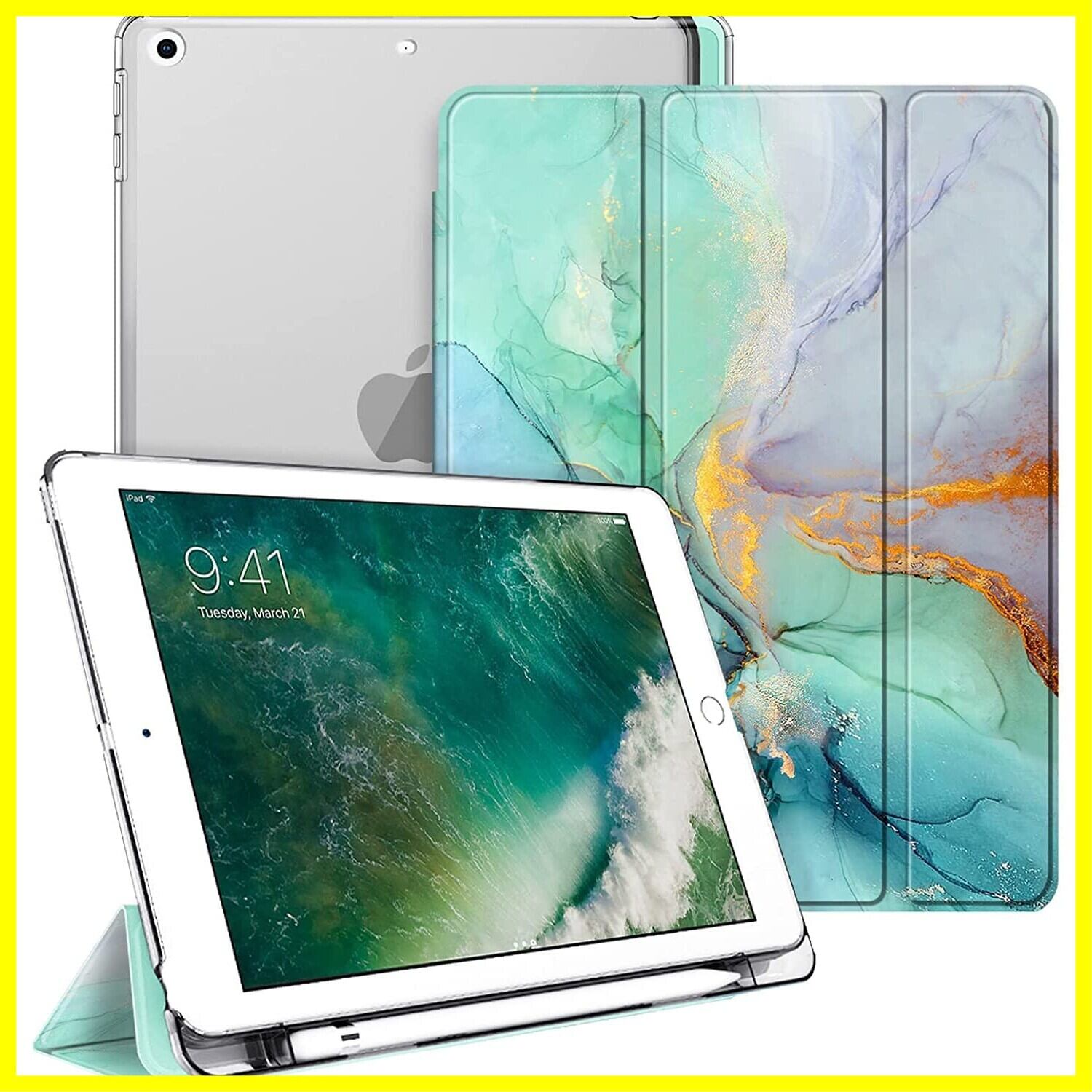 Fintie iPad 9.7 2018 2017 ケース ペンホルダー付き Apple Pencil 収納可能 三つ折スタンド スリープ機能 軽量 薄型 半透明 バックカバー iPad 9.7 インチ 第6世代 / 第5世代 対応 (モデル番号A1893、A1954、A1822、A1823)(柄 X マーブルグリーン)