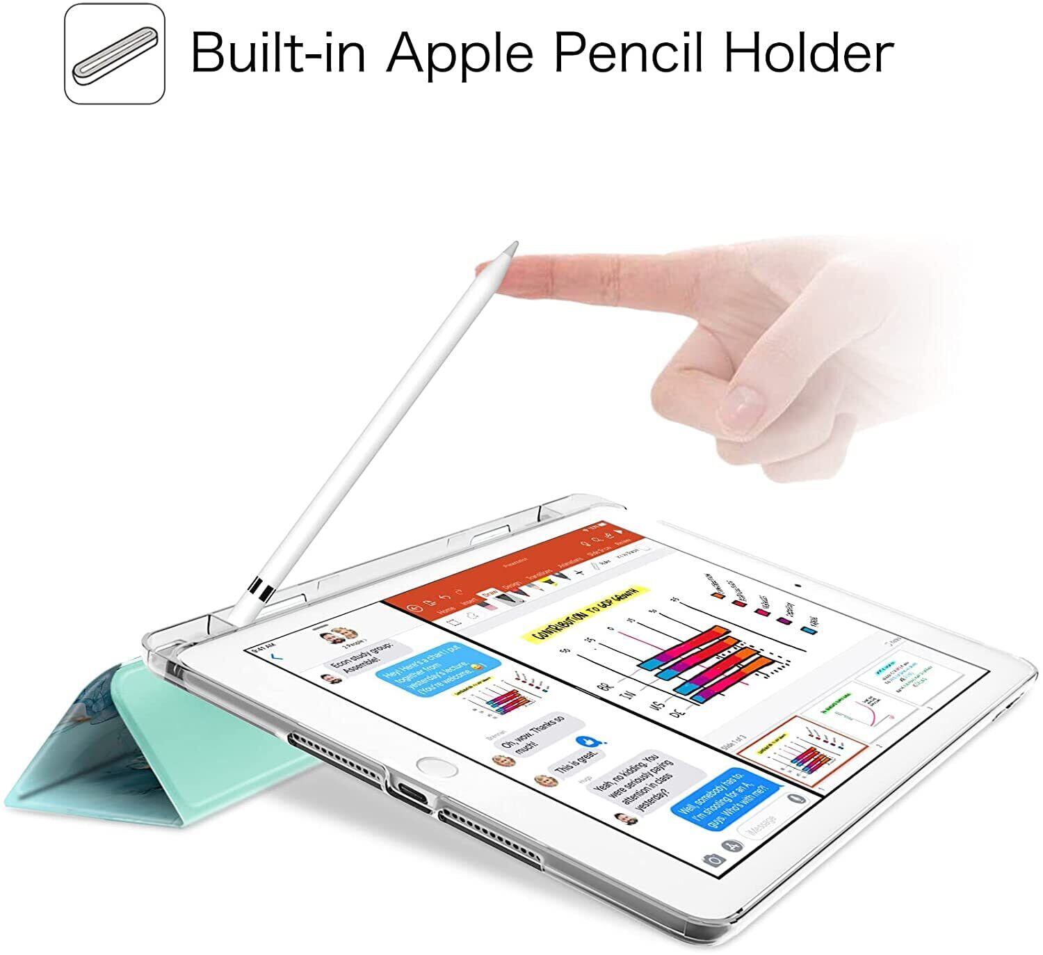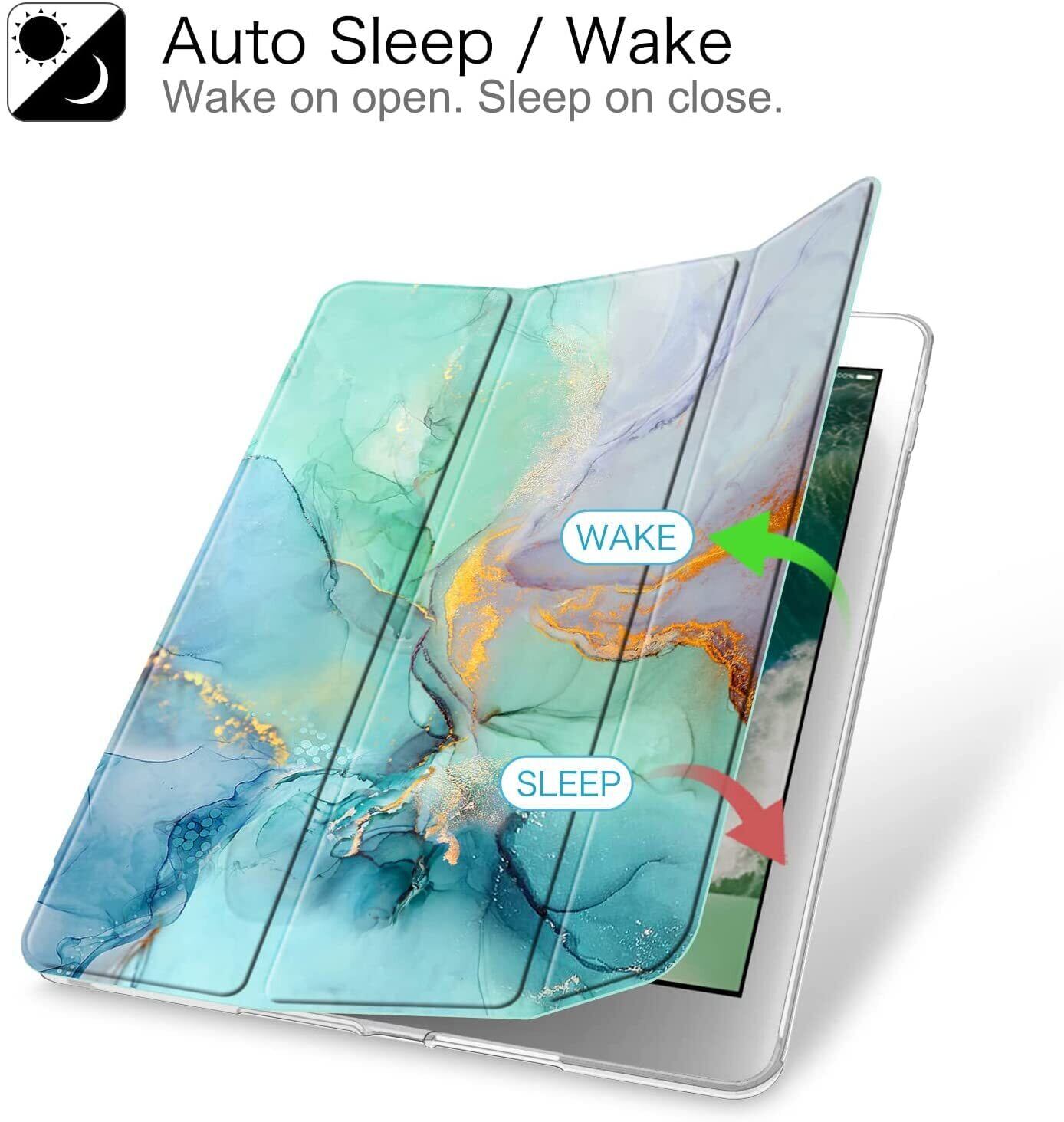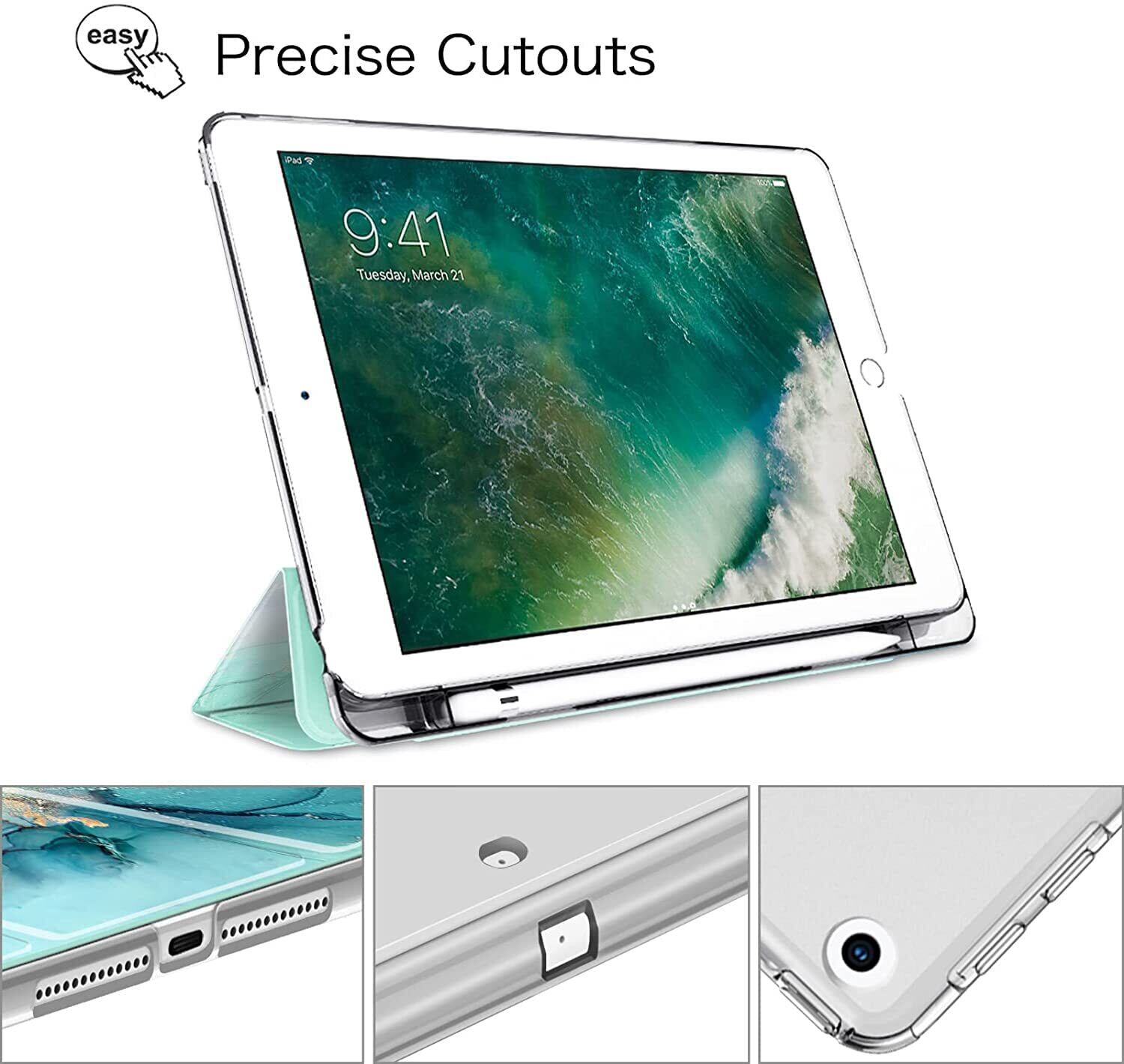 Fintie iPad 9.7 2018 2017 ケース ペンホルダー付き Apple Pencil 収納可能 三つ折スタンド スリープ機能 軽量 薄型 半透明 バックカバー iPad 9.7 インチ 第6世代 / 第5世代 対応 (モデル番号A1893、A1954、A1822、A1823)(柄 X マーブルグリーン)