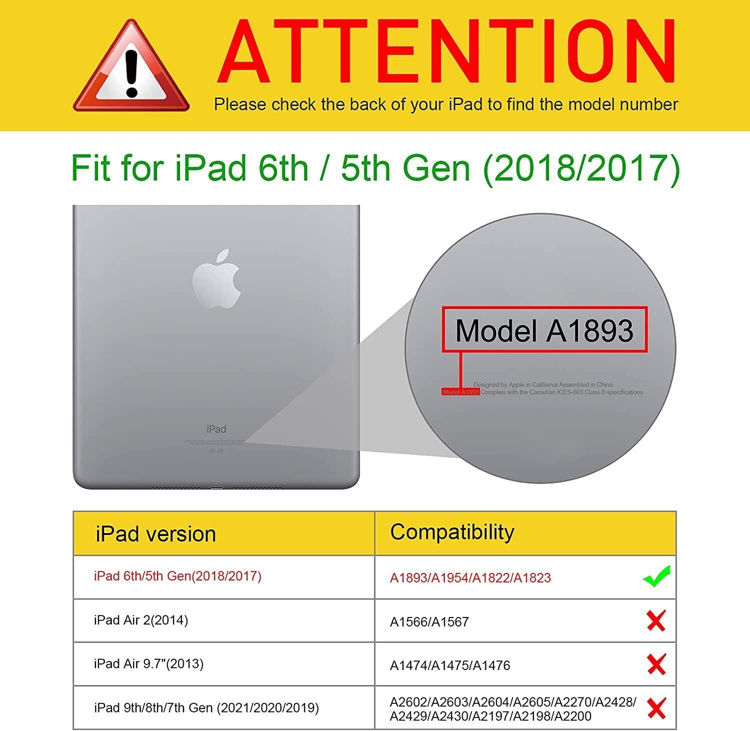 対応機種: Apple iPad 9.7 2018/2017 (モデル番号A1893、A1954、A1822、A1823)専用スマートケース カバー。 ご注意:2016年発売のiPad Pro 9.7(モデル番号A1673/A1674/A1675)が対応していませんので、ご注文の際に、お手元機種の背面にあるモデル番号を確認をお願い致します。
