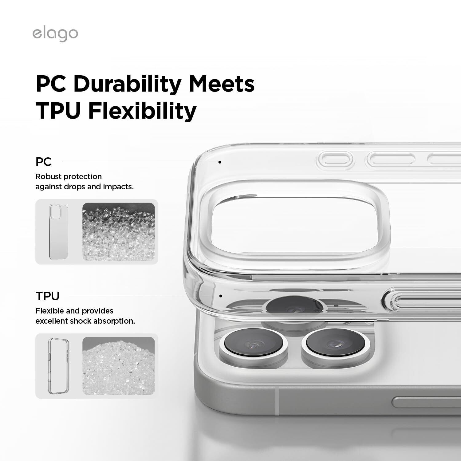 【elago】 iPhone 16 Pro 対応 ケース クリア 耐衝撃 ハイブリッド スマホケース 透明 薄型 軽量 スマホカバー [ iPhone16Pro アイフォン 16 プロ 対応 携帯ケース ] iPhone 16Pro Case HYBRID CASE クリア