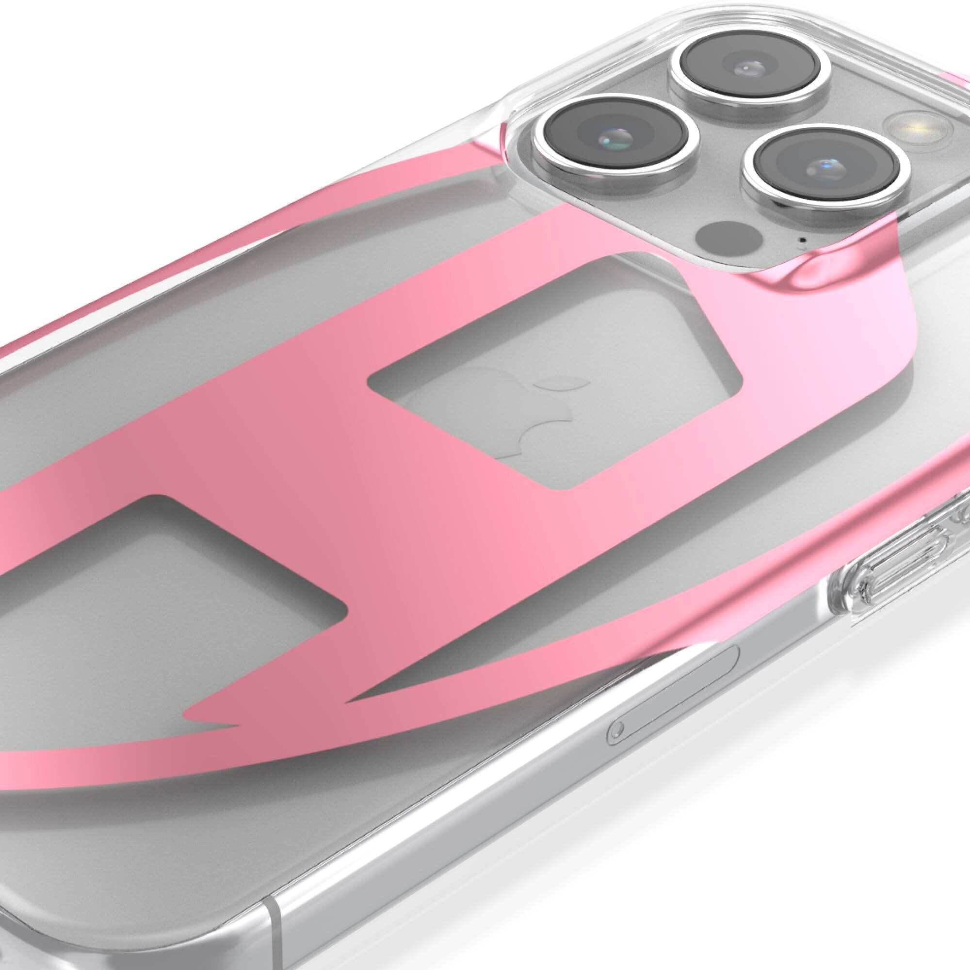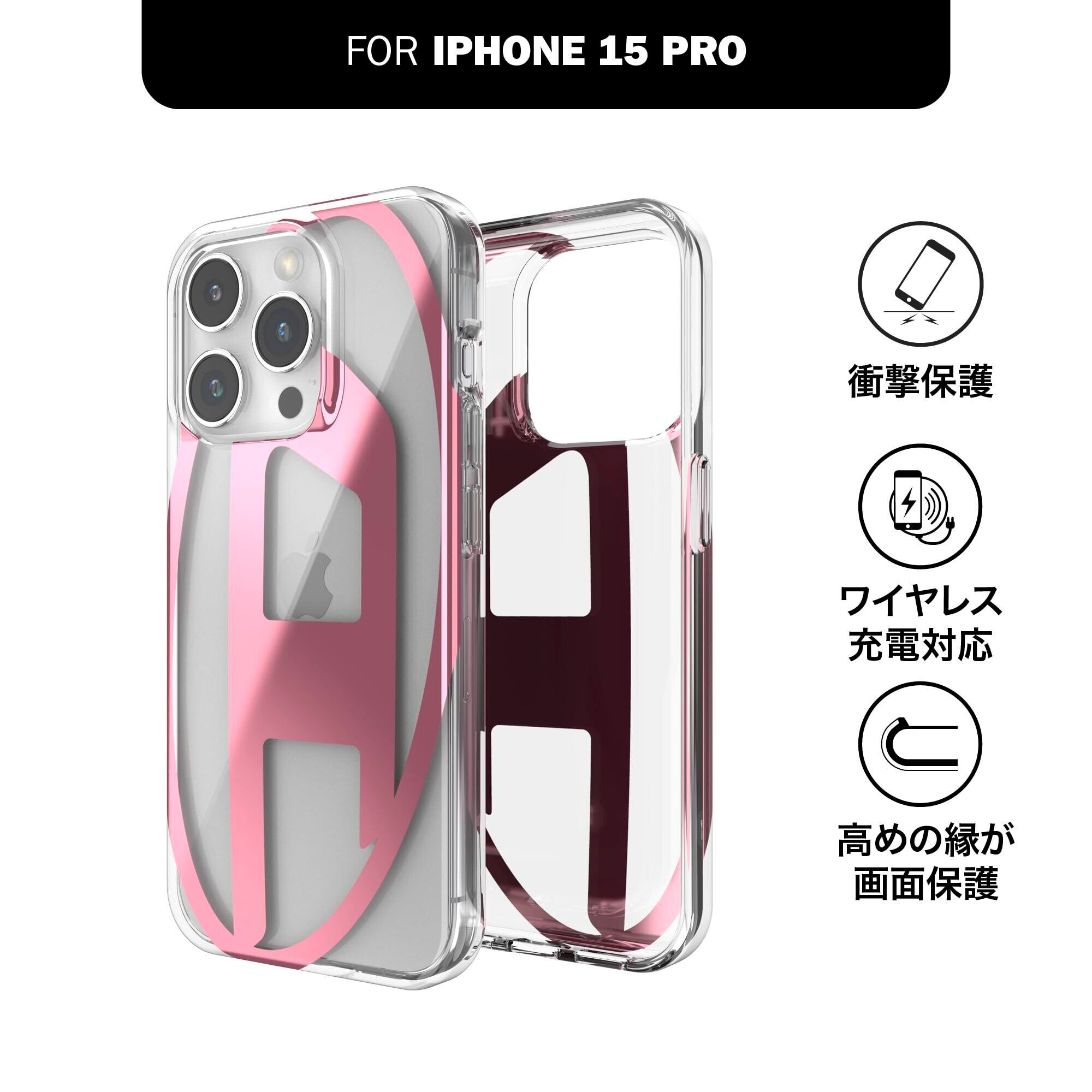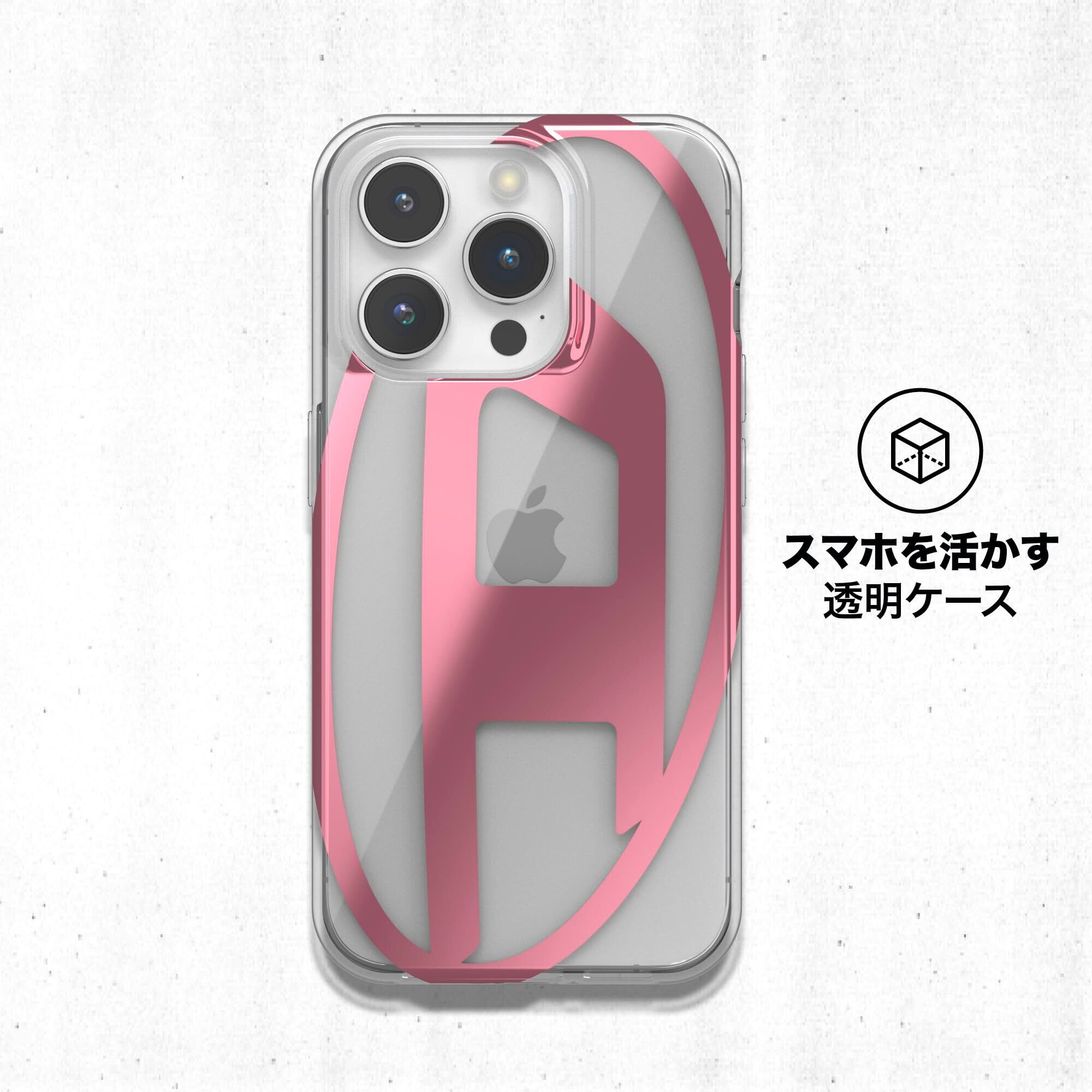 DIESEL iPhone15proケース Dロゴ クリアケース(ディーゼル iPhone 15 Pro ケース ブランド クリア x メタリックピンクロゴ)