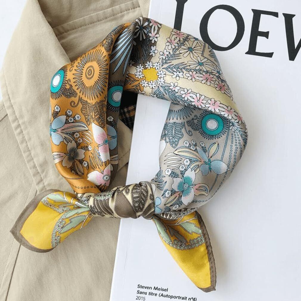 スカーフ レディース バンダナ ショール ネッカチーフ 70×70cm シルク風 お洒落 母の日 正方形 巻き方 バッグ飾り 髪飾り 春夏 海辺 旅行 通勤