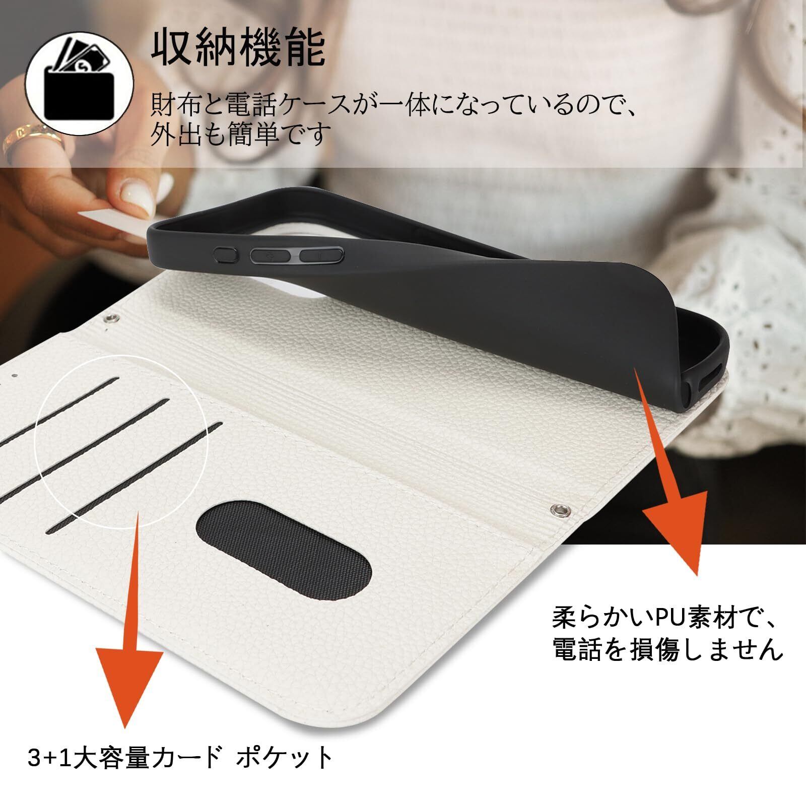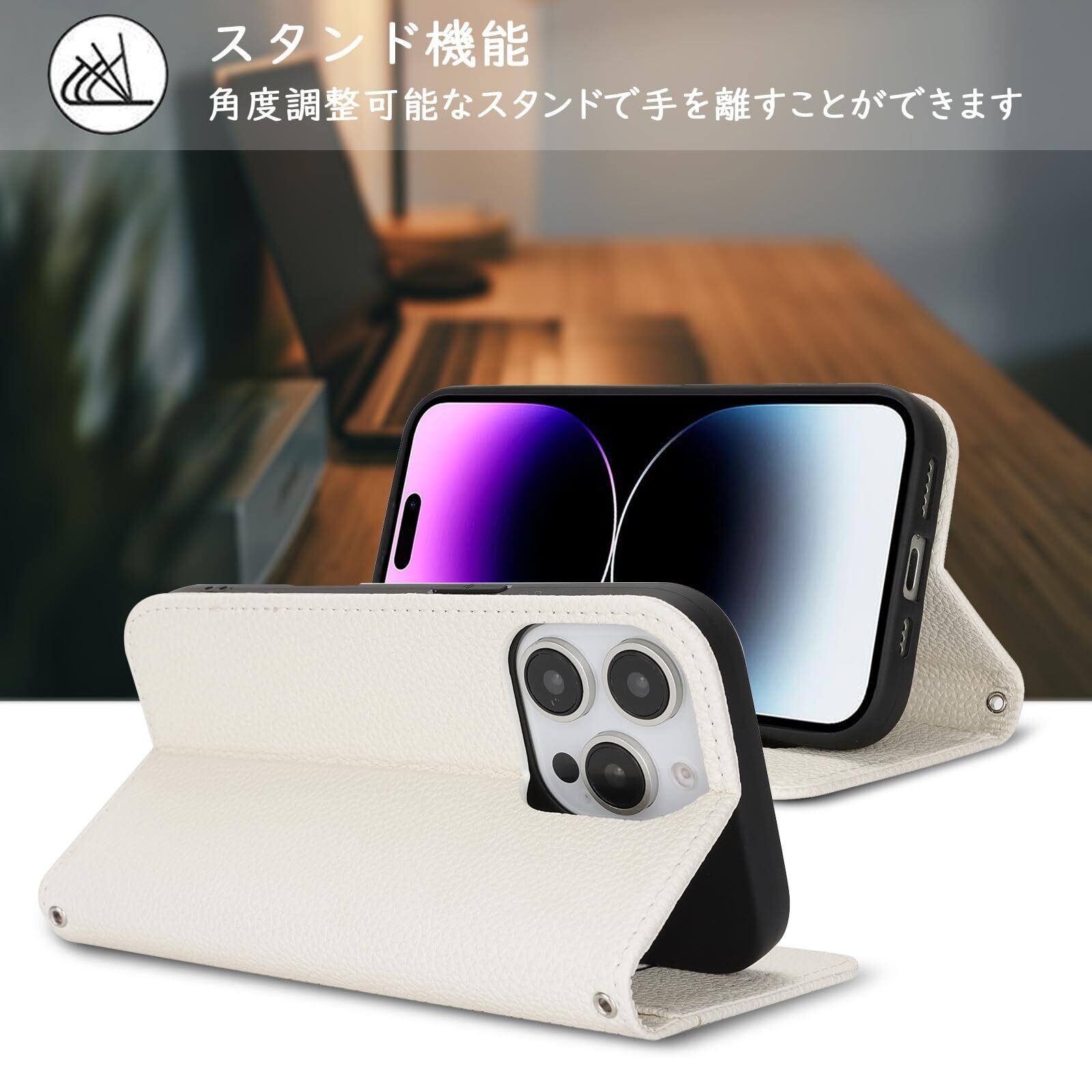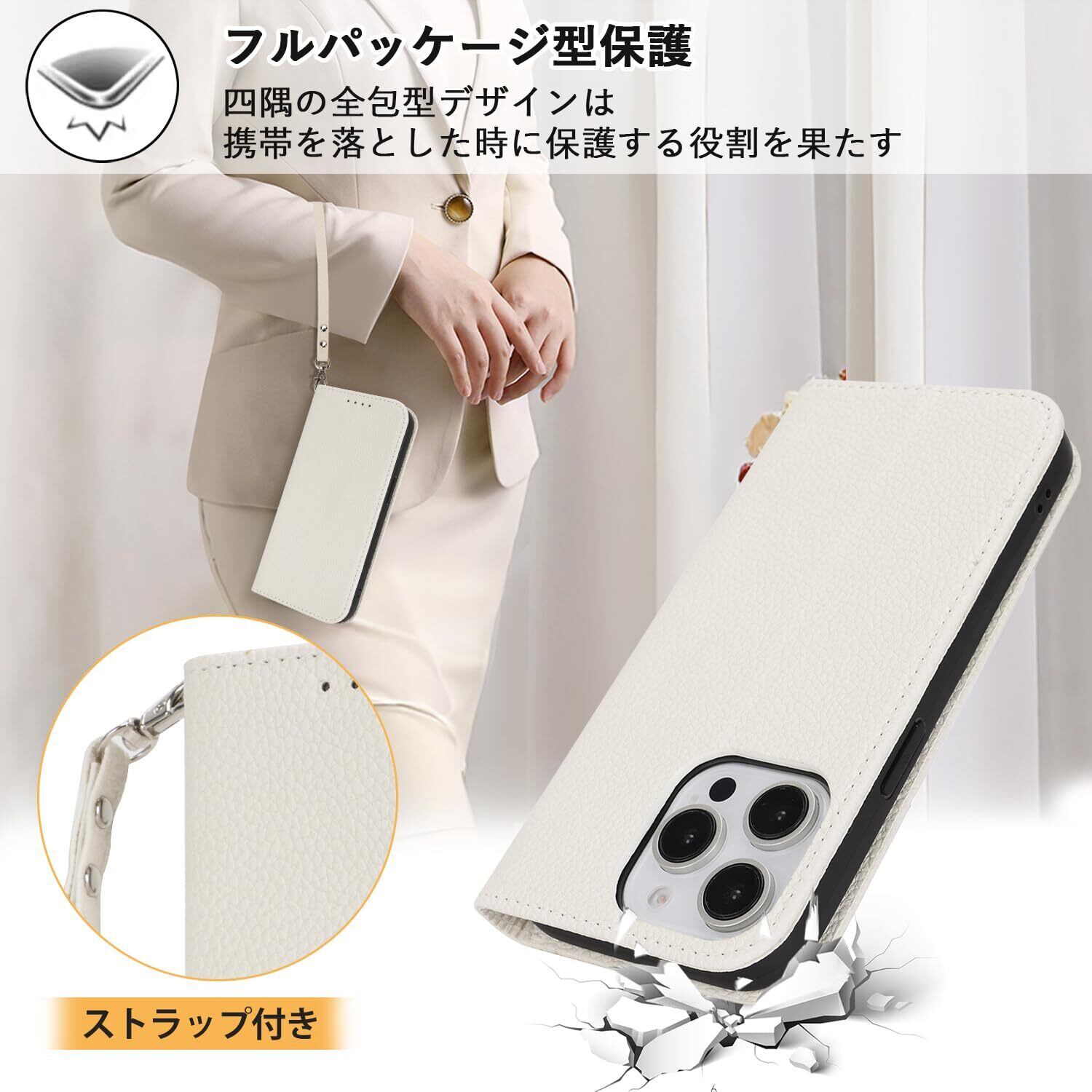 【Hamany】 対応 iPhone 14 pro max ケース 手帳型 ストラップ カード収納 スタンド機能 アイホン14プロマックスケース マグネット式 レザー スマホケース iphone 14 pro max 耐衝撃 耐久性 耐摩擦 携帯ケース -アンバー ホワイト