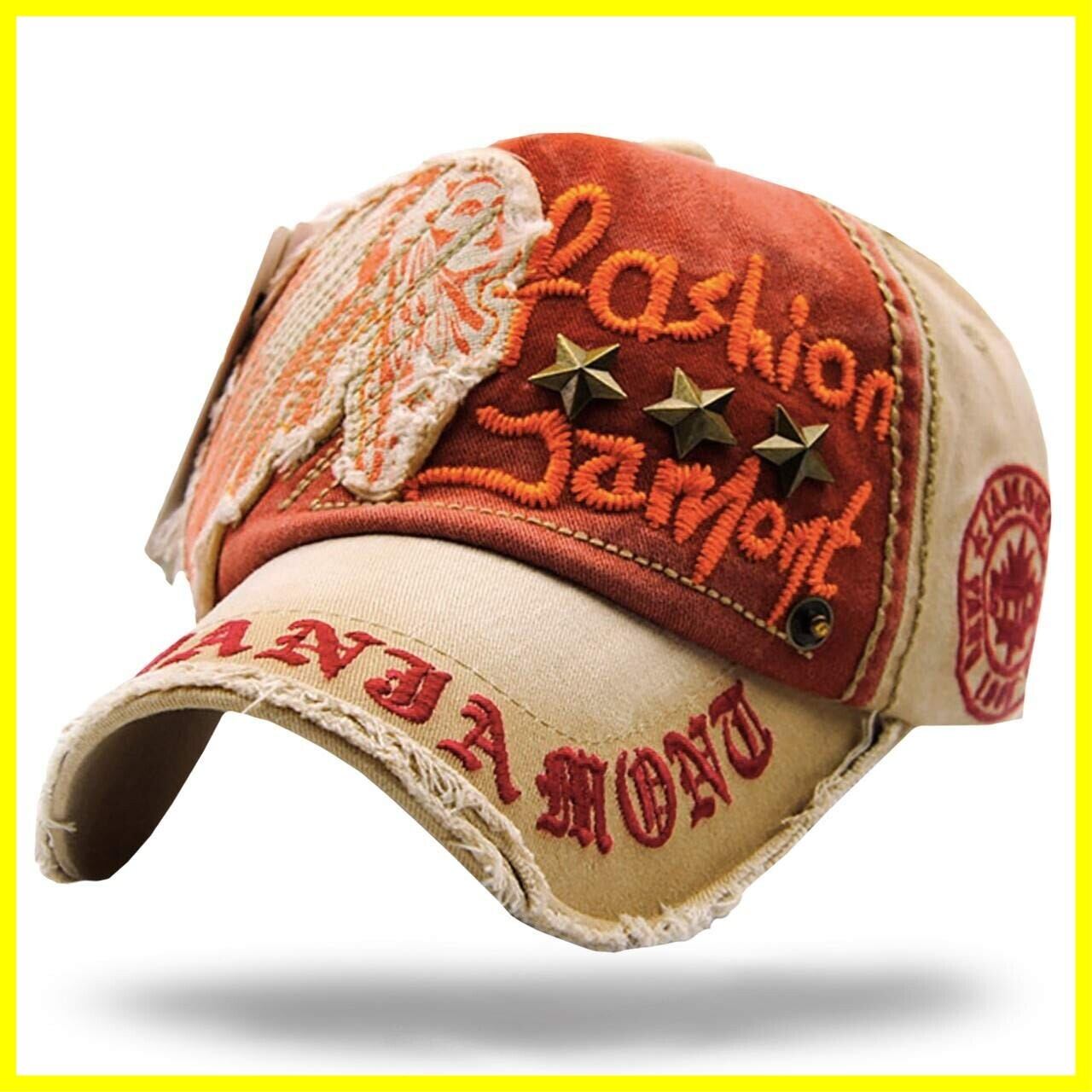 ダメージ加工を施し ヴィンテージ 感のある雰囲気に仕上げた おしゃれ で かっこいい メンズ キャップ !大きなワッペン 刺繍加工 スタッズ 加工が散りばめられた 王道 アメカジ デザイン
