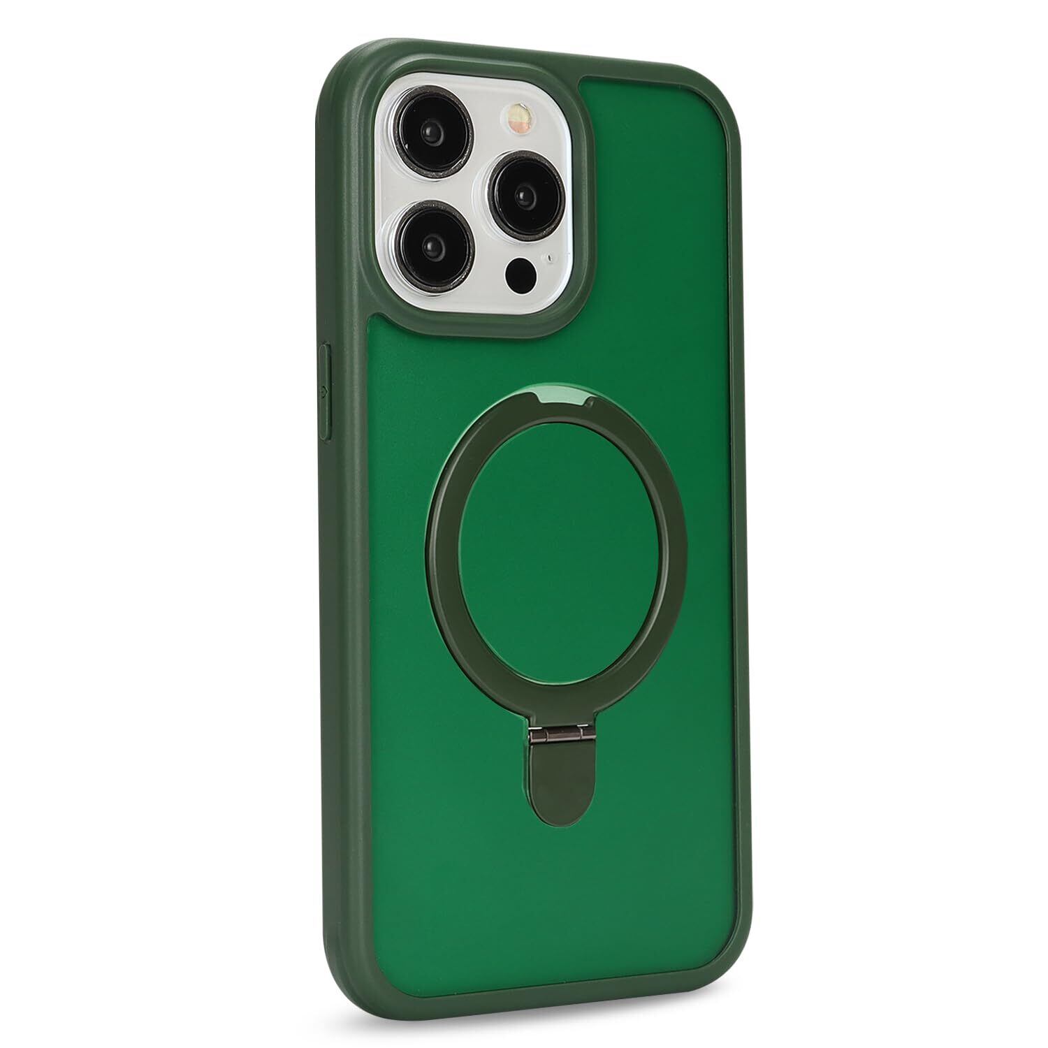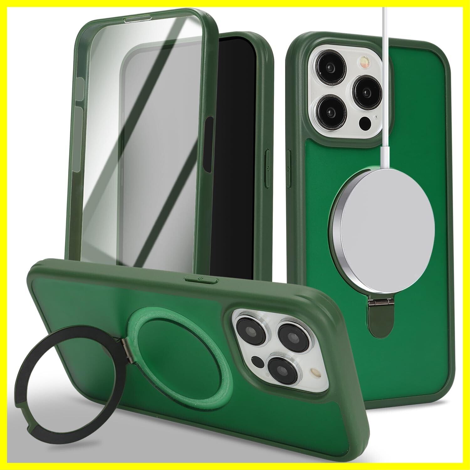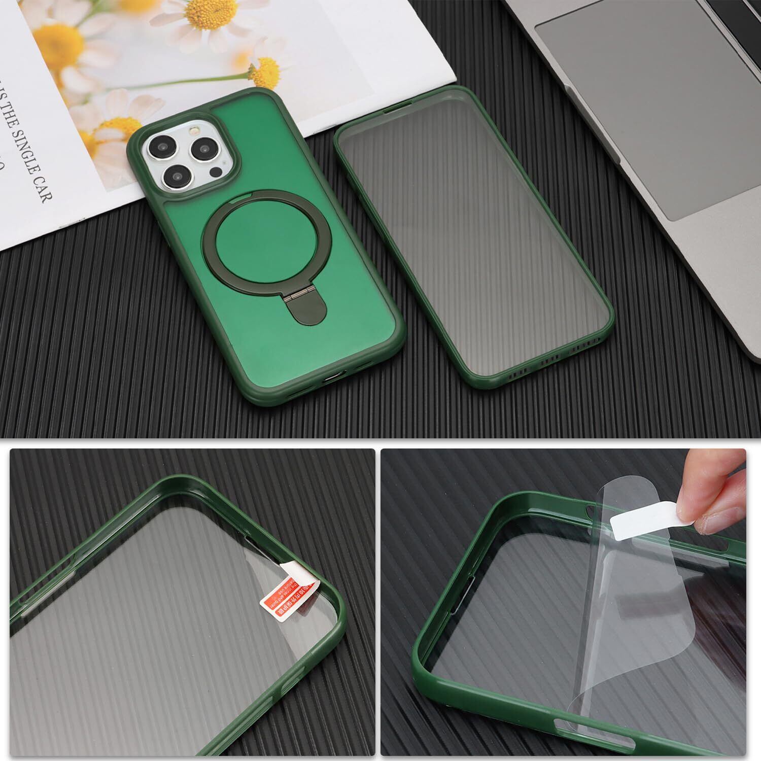 iPhone 15 Pro MaxケMagsafe対応 スタンドクリア 両面強化ガラスで全面保護 米軍耐衝撃 半透明 リング付き ワイヤレス充電対応 マット感 黄変防止 アイフォン 15 Pro Max 透 ケース・スマホケース iPhone 15 ProMax 人気 6.7インチ(緑)