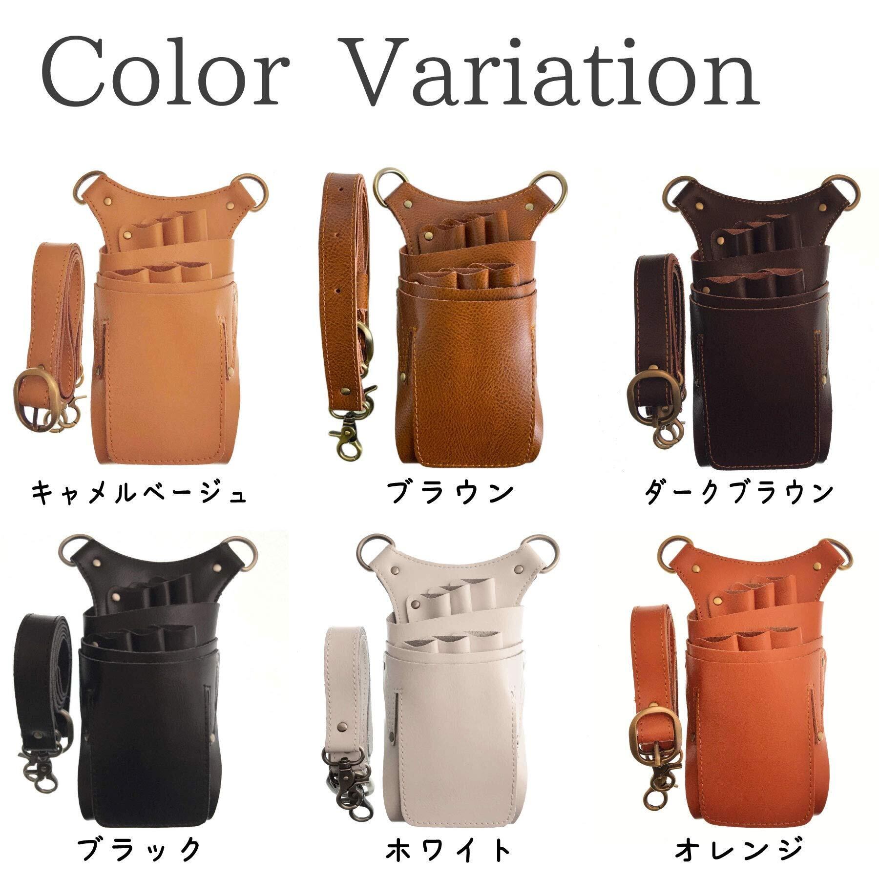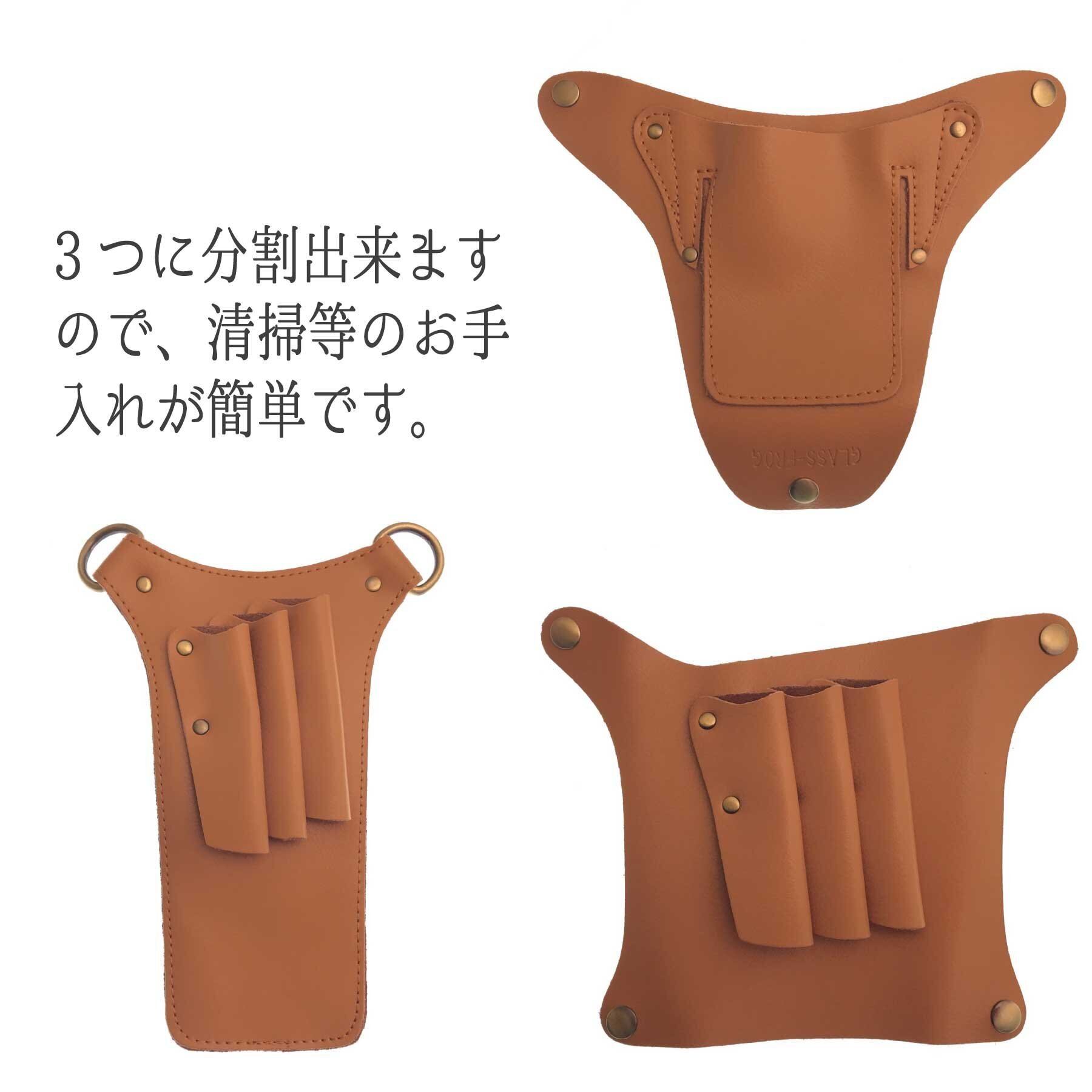 【仕様】ハサミ6丁収納 多目的スペース2カ所 ・裏面のボタンをはずすとシザーケースを3つにはずすことが出来ます。 【素材】本革(牛革)*本体+ベルト