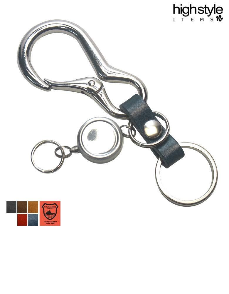 [highstyle] 栃木レザー キーホルダー メンズ レディース 日本製 栃木レザー&カラビナ&リールキー キーホルダー