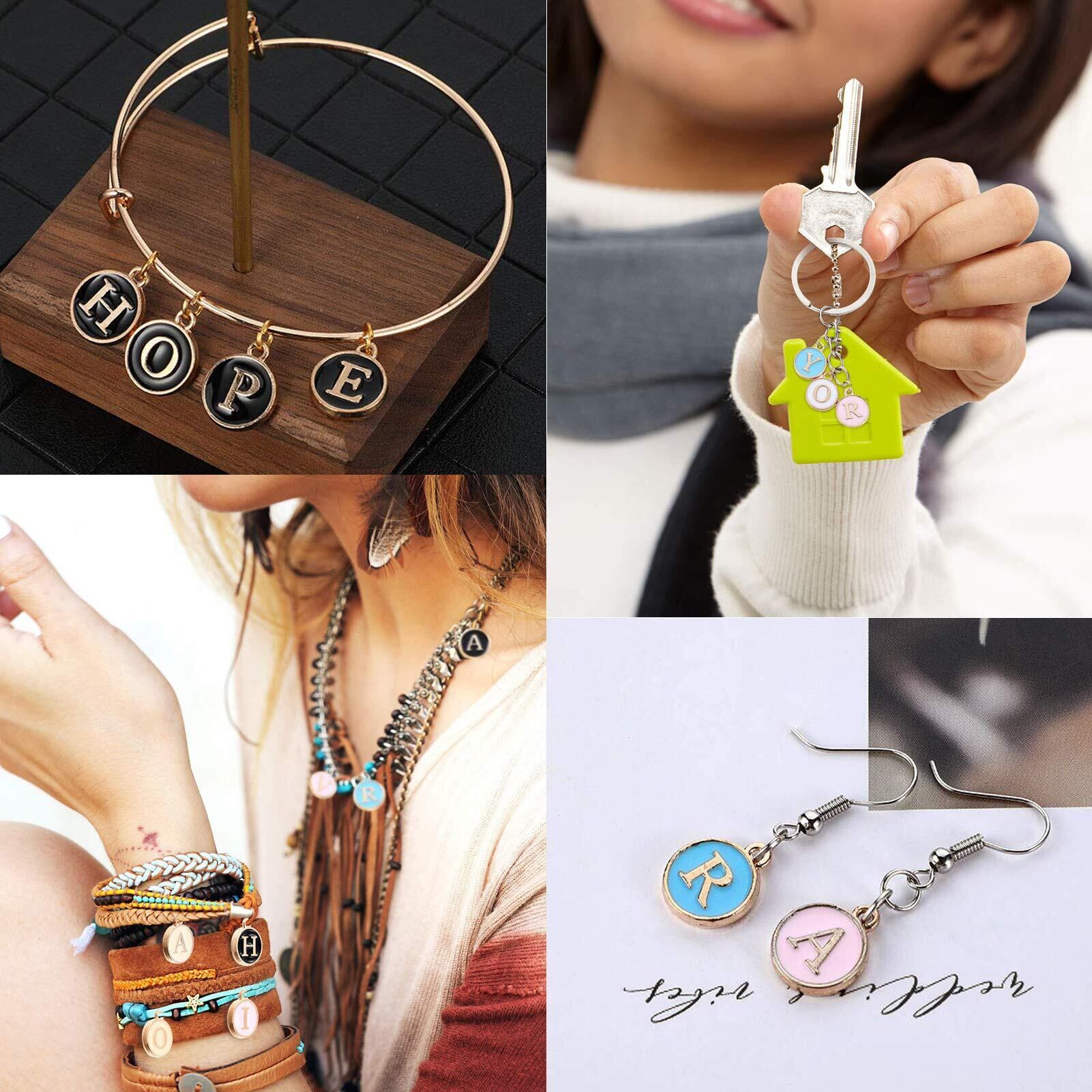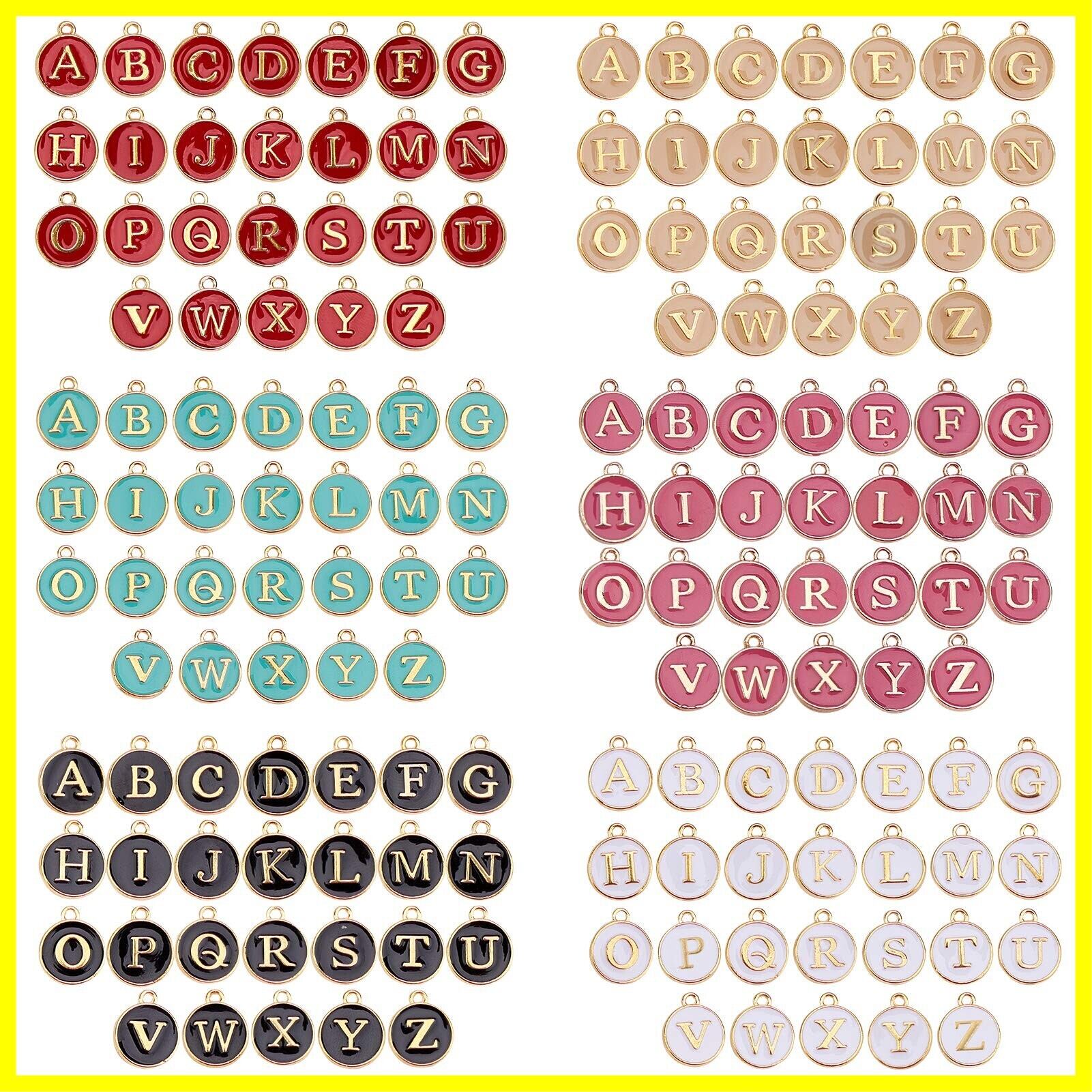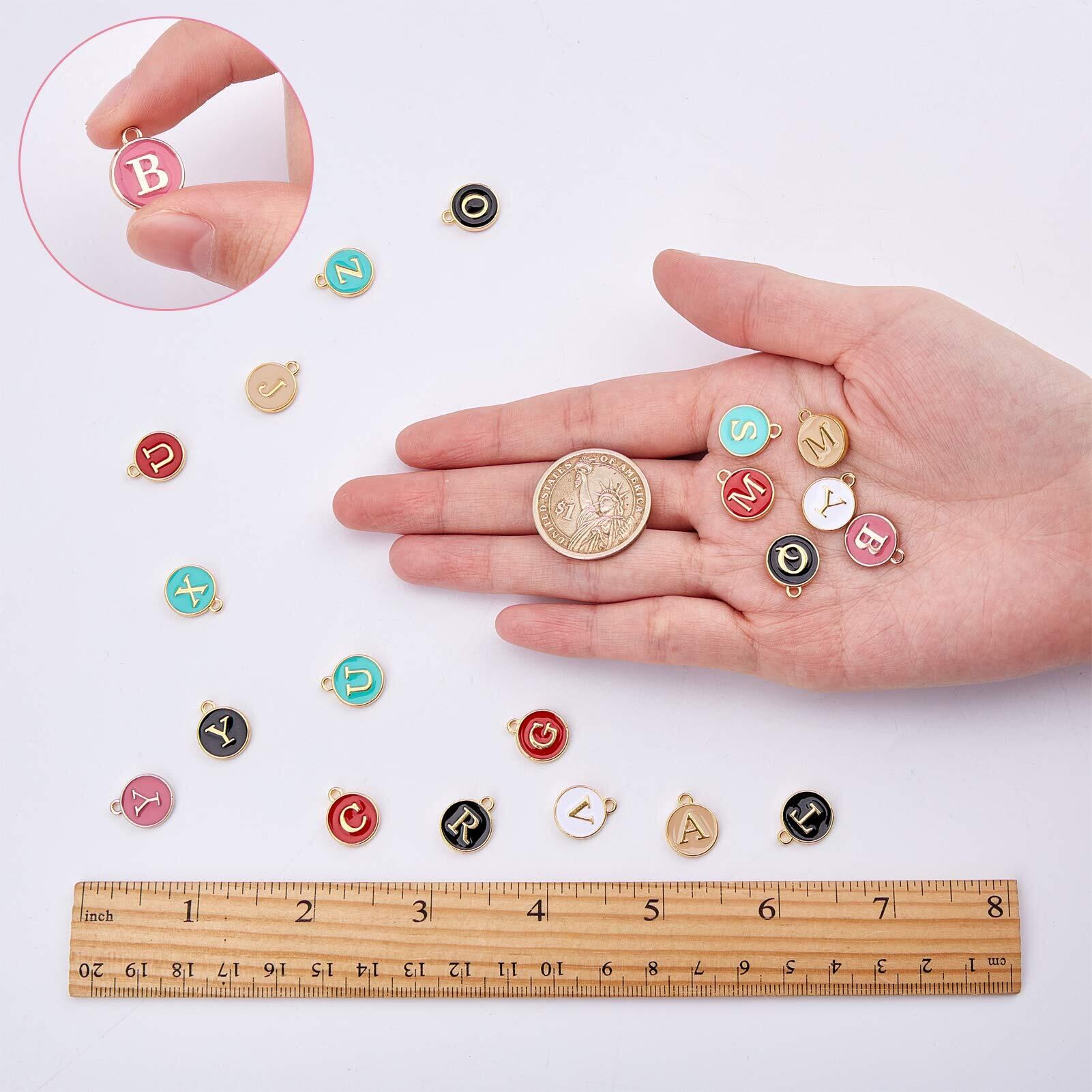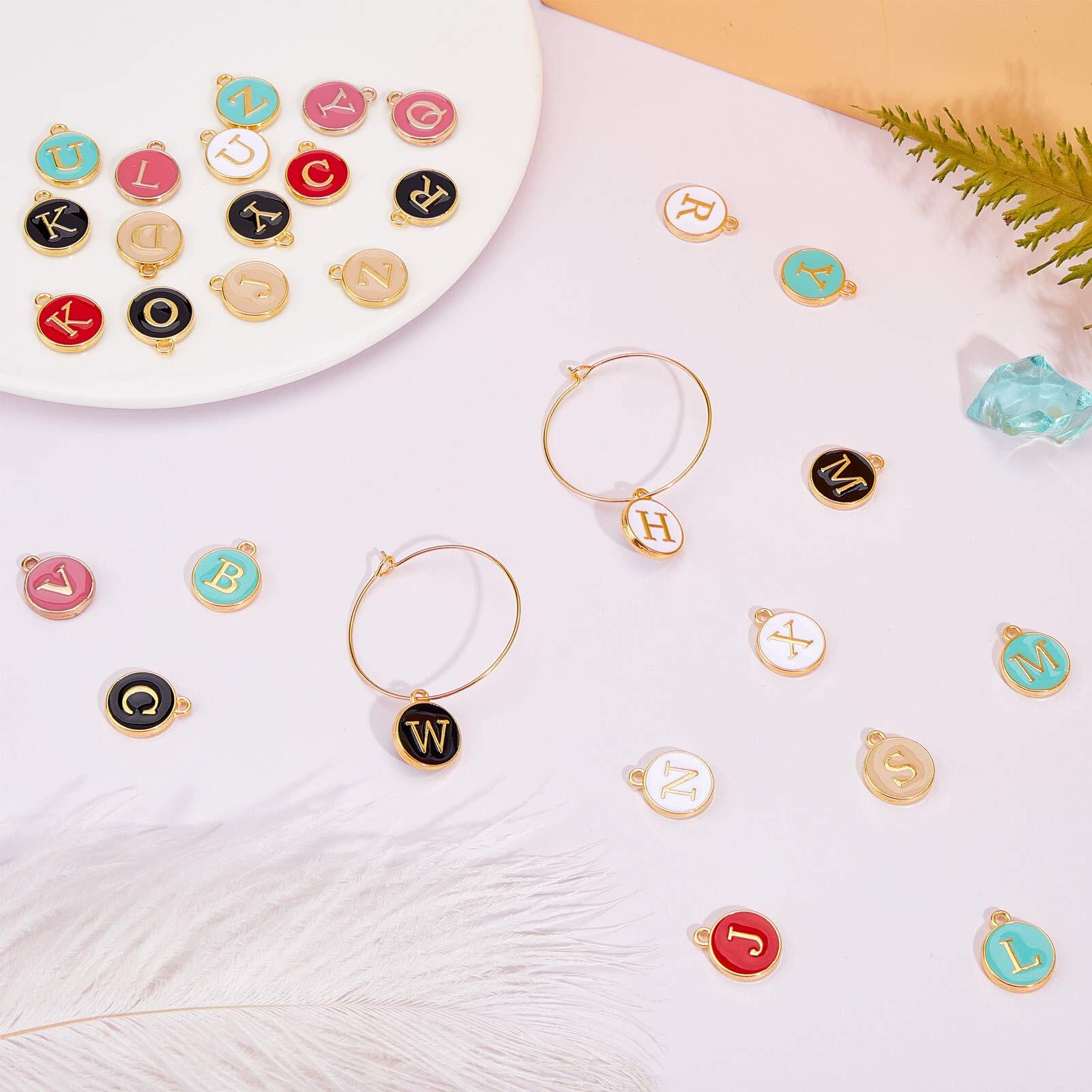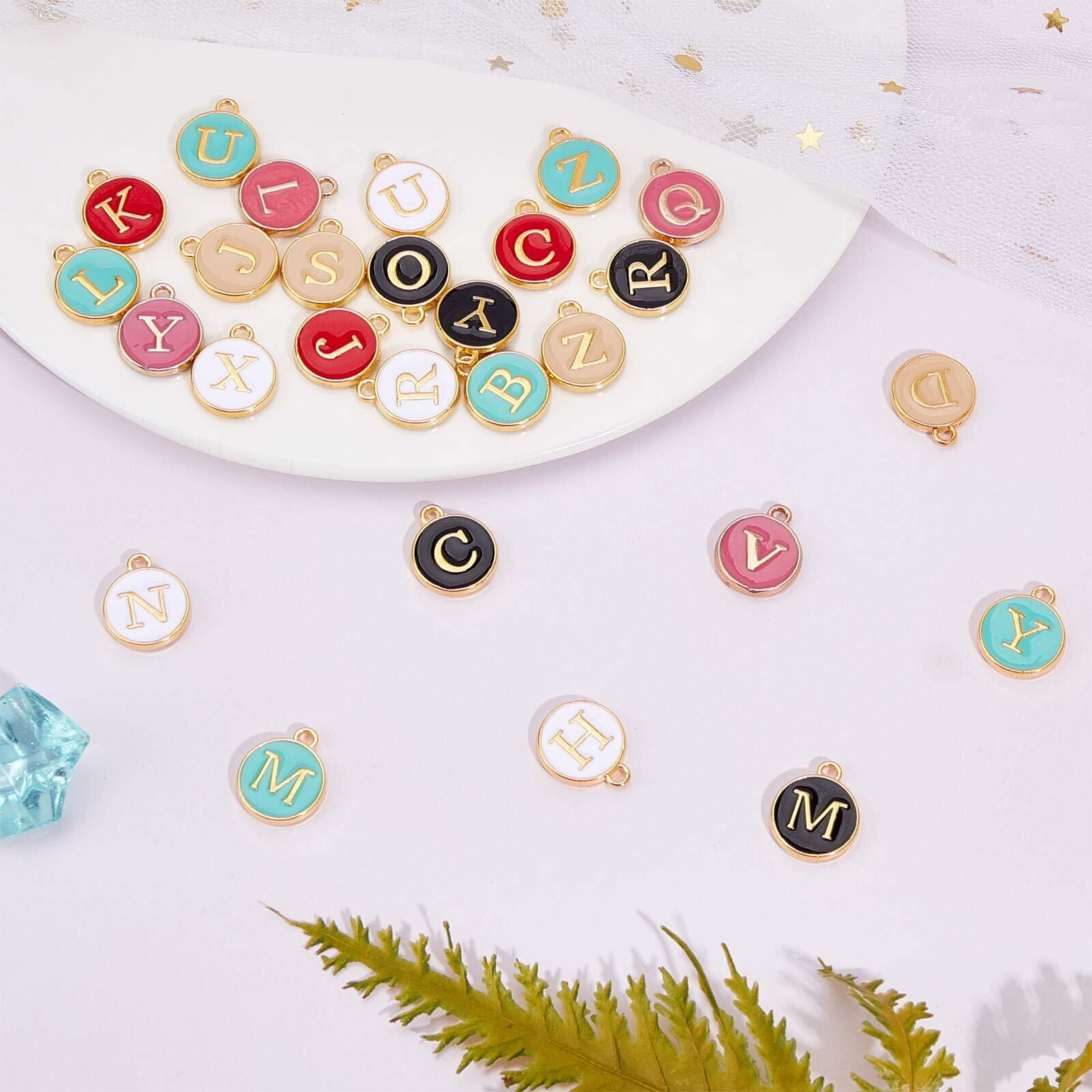 SUNNYCLUE 6色156個 エナメル イニシャル アルファベット チャーム ネックレス ペンダント レター パーツ イヤリング 文字チャーム チョーカー ブレスレット 26文字セット A-Z柄 合金ペンダント 丸メタル チャームパーツ アクセサリーパーツ マカロン系 基礎パーツ ジュエリー作り デコキット クラフト手芸 手作りキット DIY飾り物