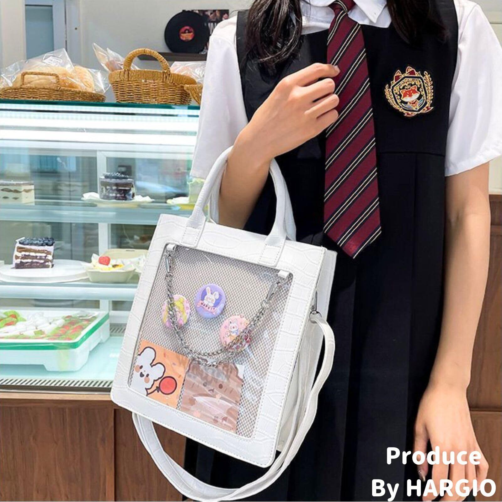 [ハルジオ] 痛バッグ 痛バ 痛バック 小さめ ミニ 2WAY トート トートバッグ ショルダー ショルダーバッグ 可愛い 高級 クロコ柄 黒 白 ブラック ホワイト いたばっぐ いたばっく いたば
