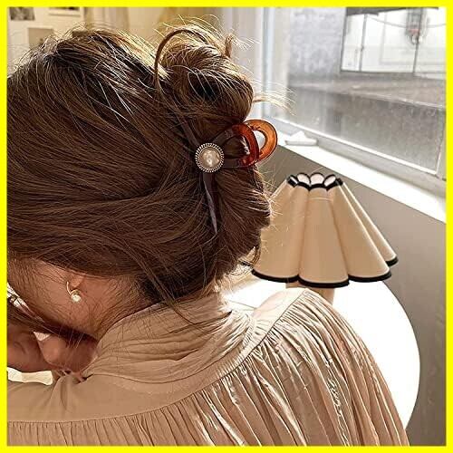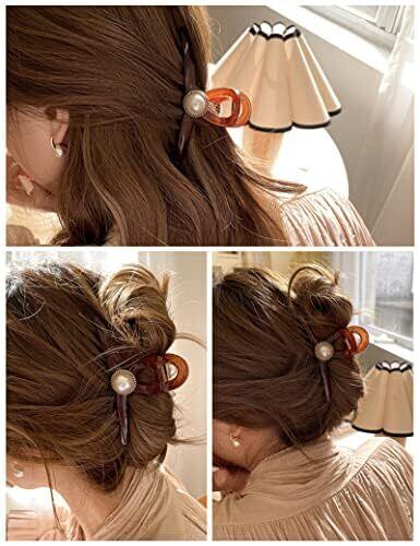 happykau ヘアクリップ大きめしっかりとまる 髪留め バンスクリップ ヘアくりっぷ ヘアアクセサリー大人 韓国 可愛い おしゃれ人気 パールのヘアクリップ 濃密な髪も使用可能 ヘアキャッチおしゃれ 贈り物 (ブラウンパール)