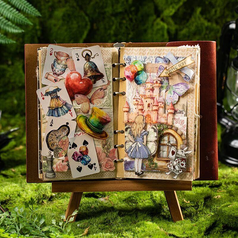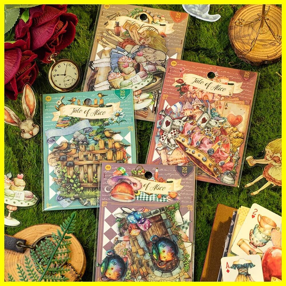 120枚 シール フレークシール コラージュ 素材 ペーパー 素材紙 レースユートピアステッカーレトロアリス・ストーリー 海外韓国 シール帳 ,メモ用紙ノート素材、日記装飾用品 (ailisigushi)