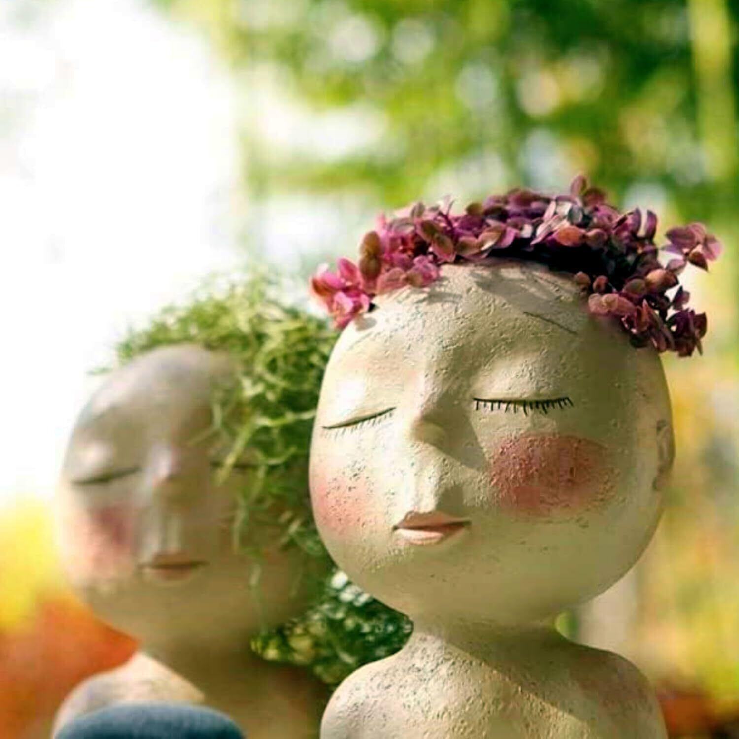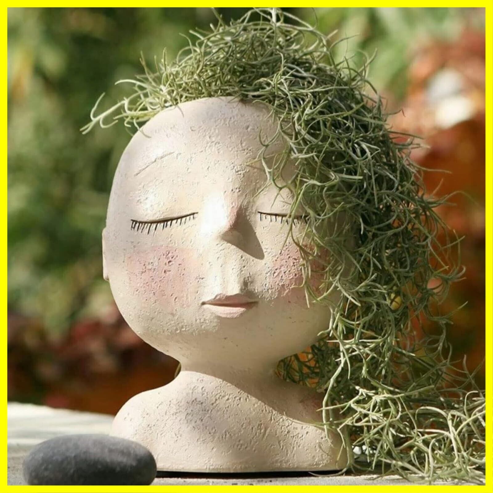 ヘッドプランター 植木鉢 顔 フェイスプランターポット 可愛い女子の顔プランター 萌えフラワーポット フェイスプランターポット 花瓶 観葉植物の鉢 フェイス花器 樹脂 サボテンプランタ 屋内外植物用 水抜き穴付き (閉じた目)