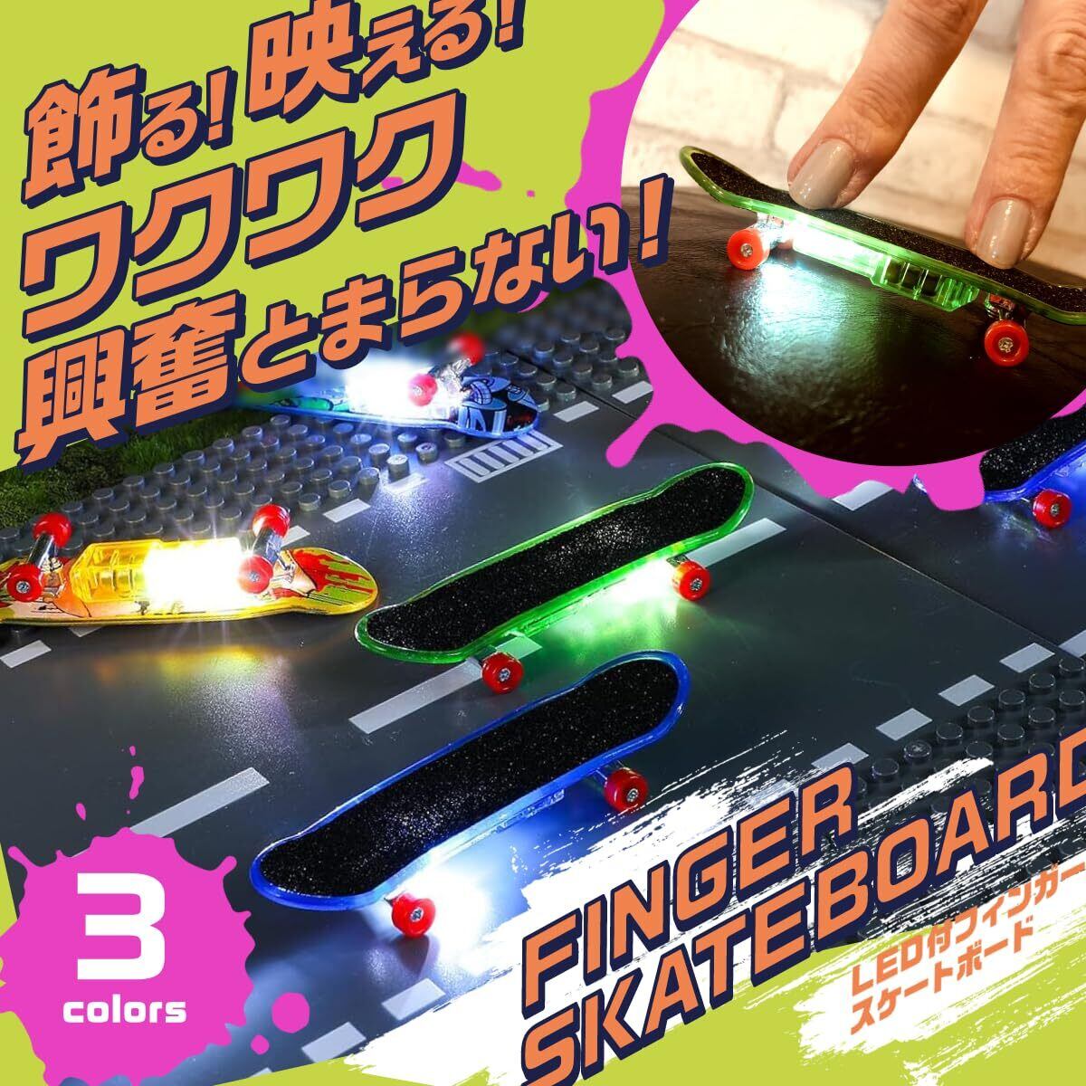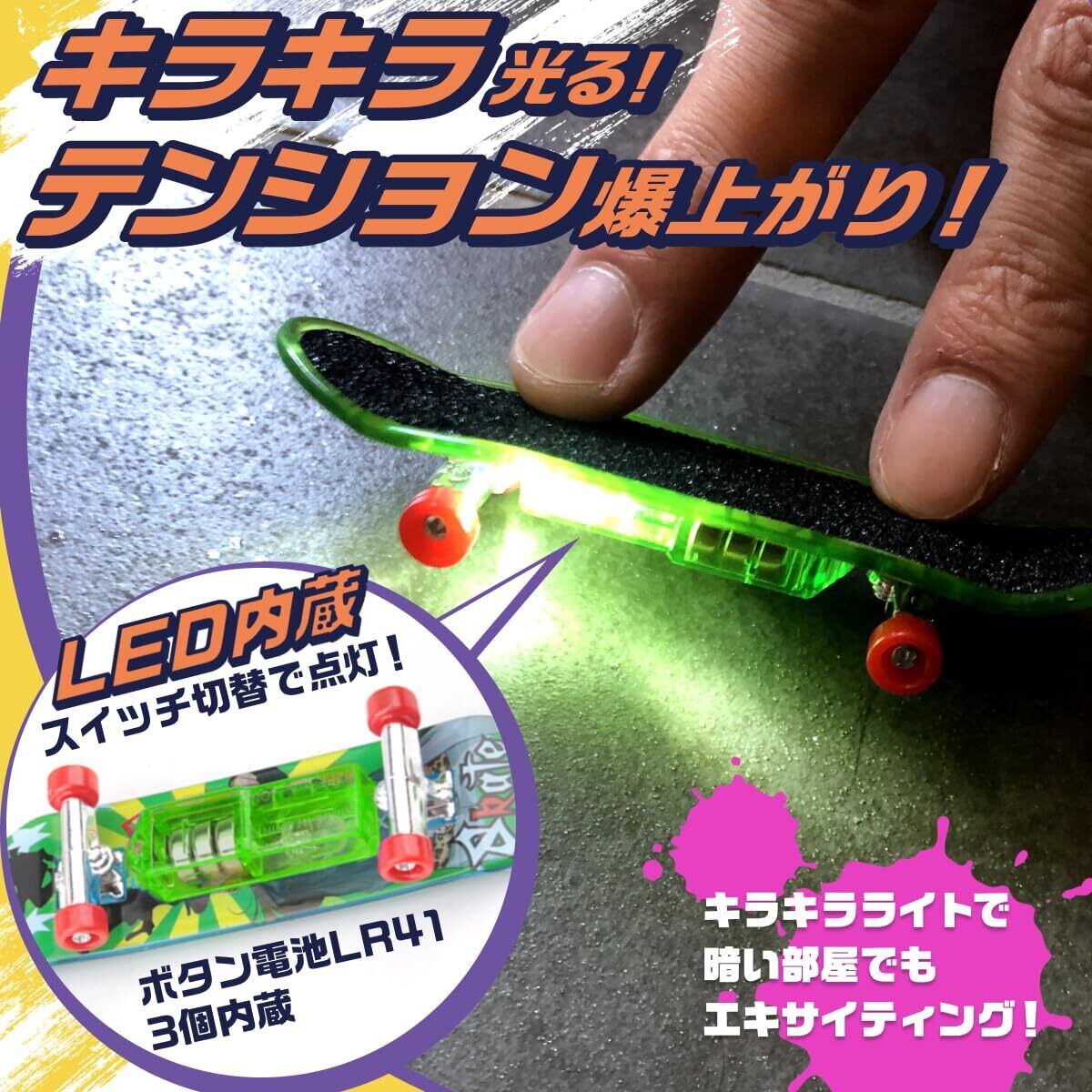 (Kitzel)指スケボー 指スケ フィンガースケートボード LED付き フィンガーボード 誕生日プレゼント 贈り物 子供 イエロー・グリーン2個セット