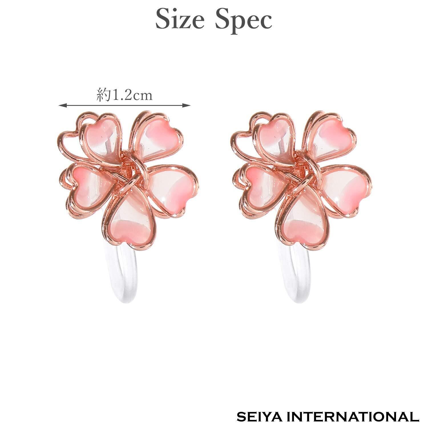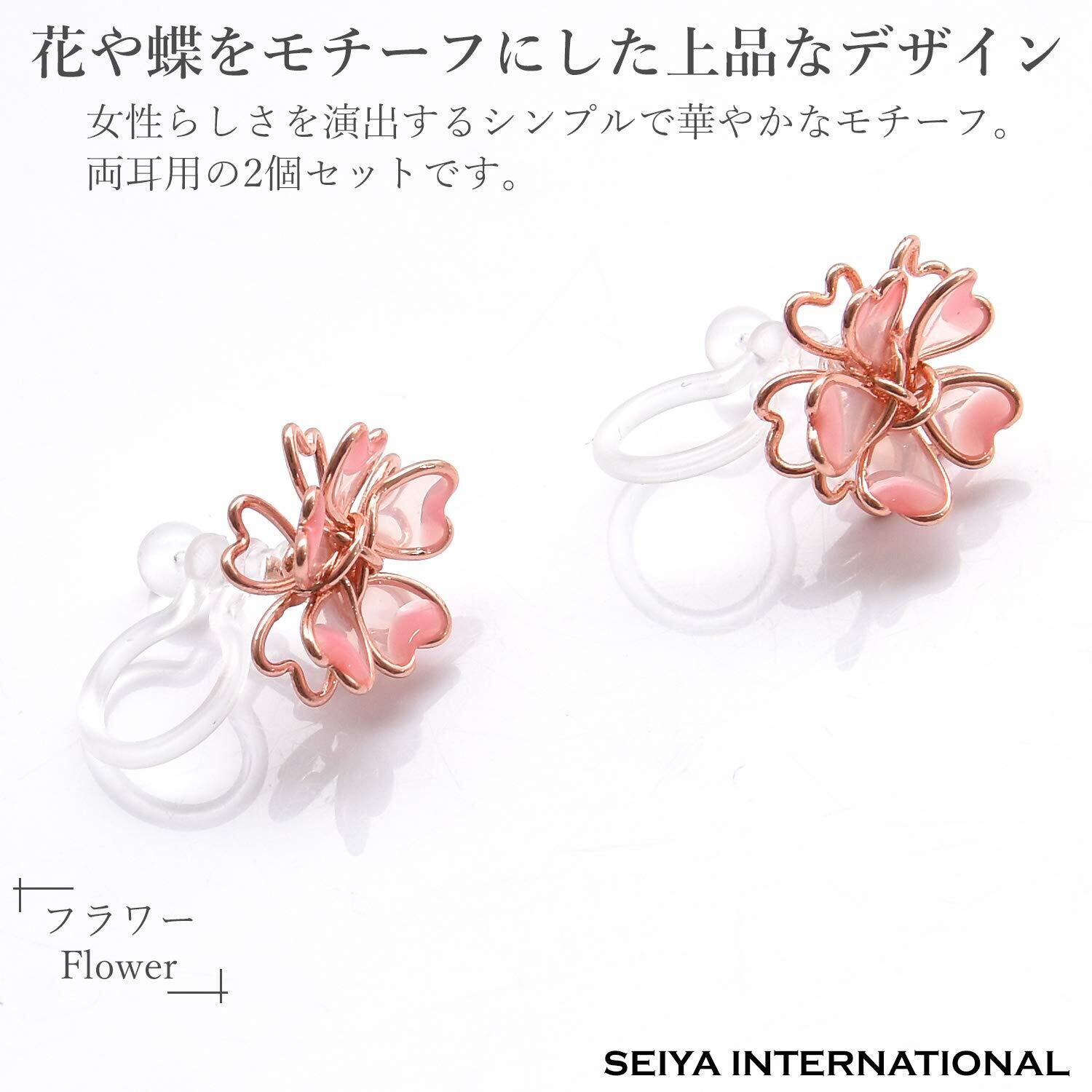 [SEIYA INTERNATIONAL] イヤリング レディース ピアス風 ノンホールピアス フェイクピアス イヤーカフ 揺れる 桜 花 蝶 ノンホール 樹脂 クリップタイプ 両耳セット