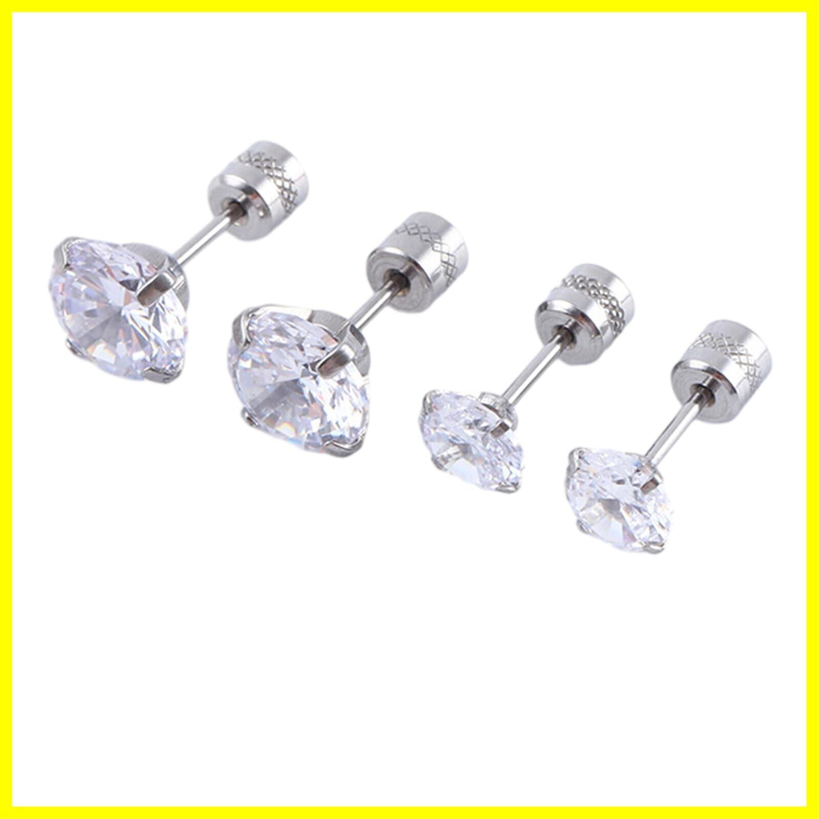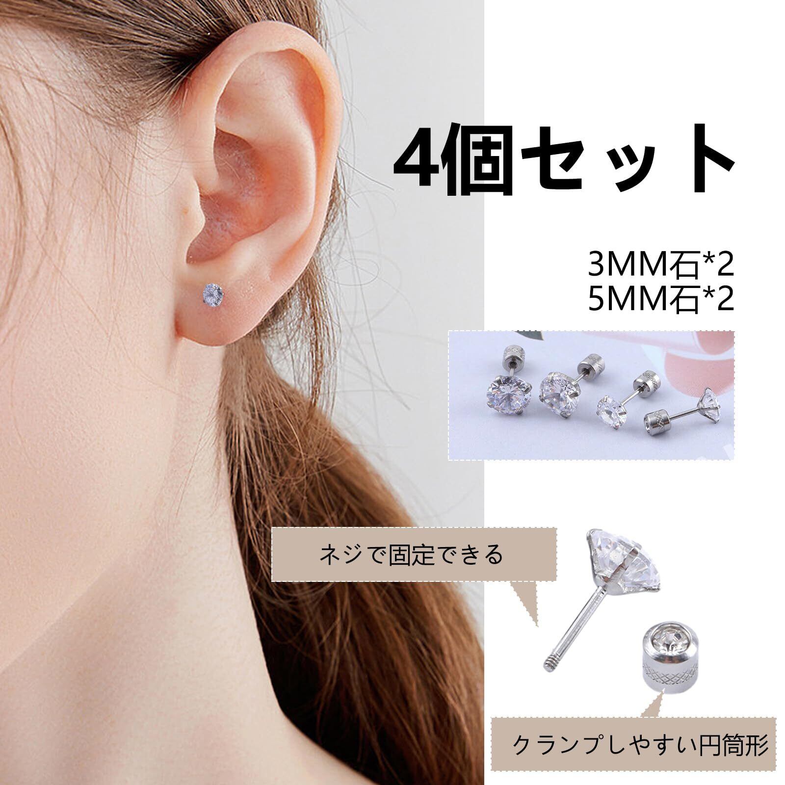 【セット内容】TweezerGuru サージカルステンレスピアス 両耳 1粒石 ネジ式 : ストーン 3mm × 2個 / 5mm × 2個 合計4個セット 保存袋付