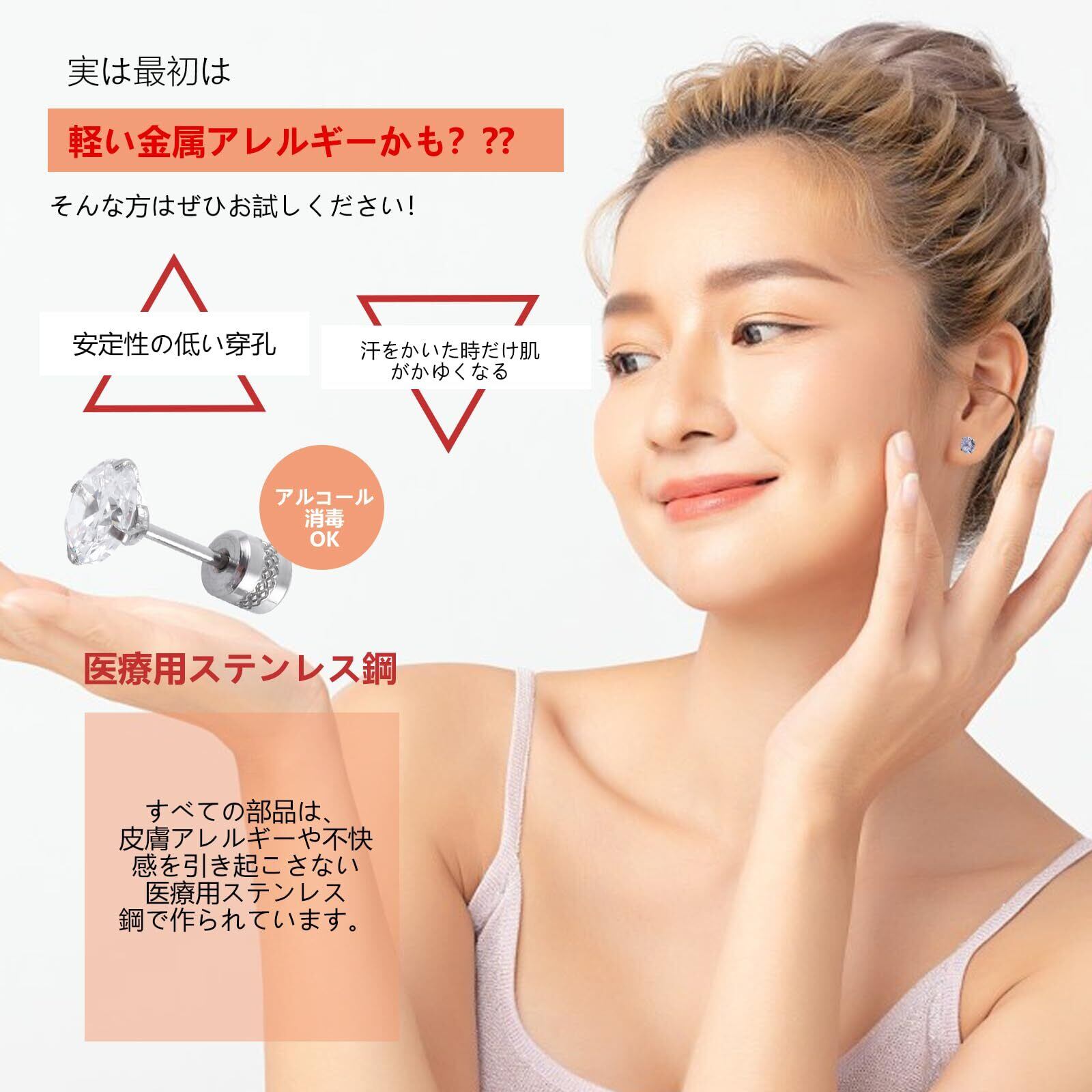 ピアス レディース サージカルステンレス 金属アレルギー対応 ファーストピアス セカンドピアス ネジ式 シンプル 両耳 4個セット