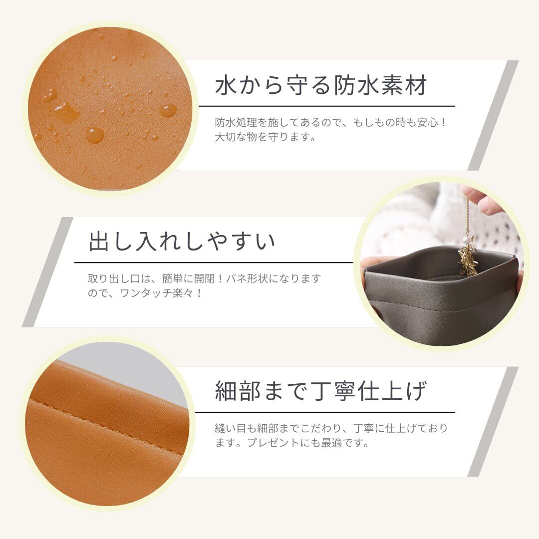 手のひらサイズのPUレザーポーチ。大切ねジュエリーなどを入れ、保管するのに最適です。コンパクト設計になるので、バックなどに入れて旅行や普段の外出など持ち運びに便利です。高品質のPUレザー製のポーチになりますので、大切なジュエリーなどをキズなどの損傷から保護することができます。出し入れしやすい大口の取り出し口!ワンタッチで開閉するので、簡単に物を出し入れすることができ、しっかりと閉まるので、バックの中で散乱することもありません。