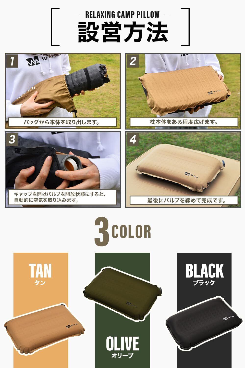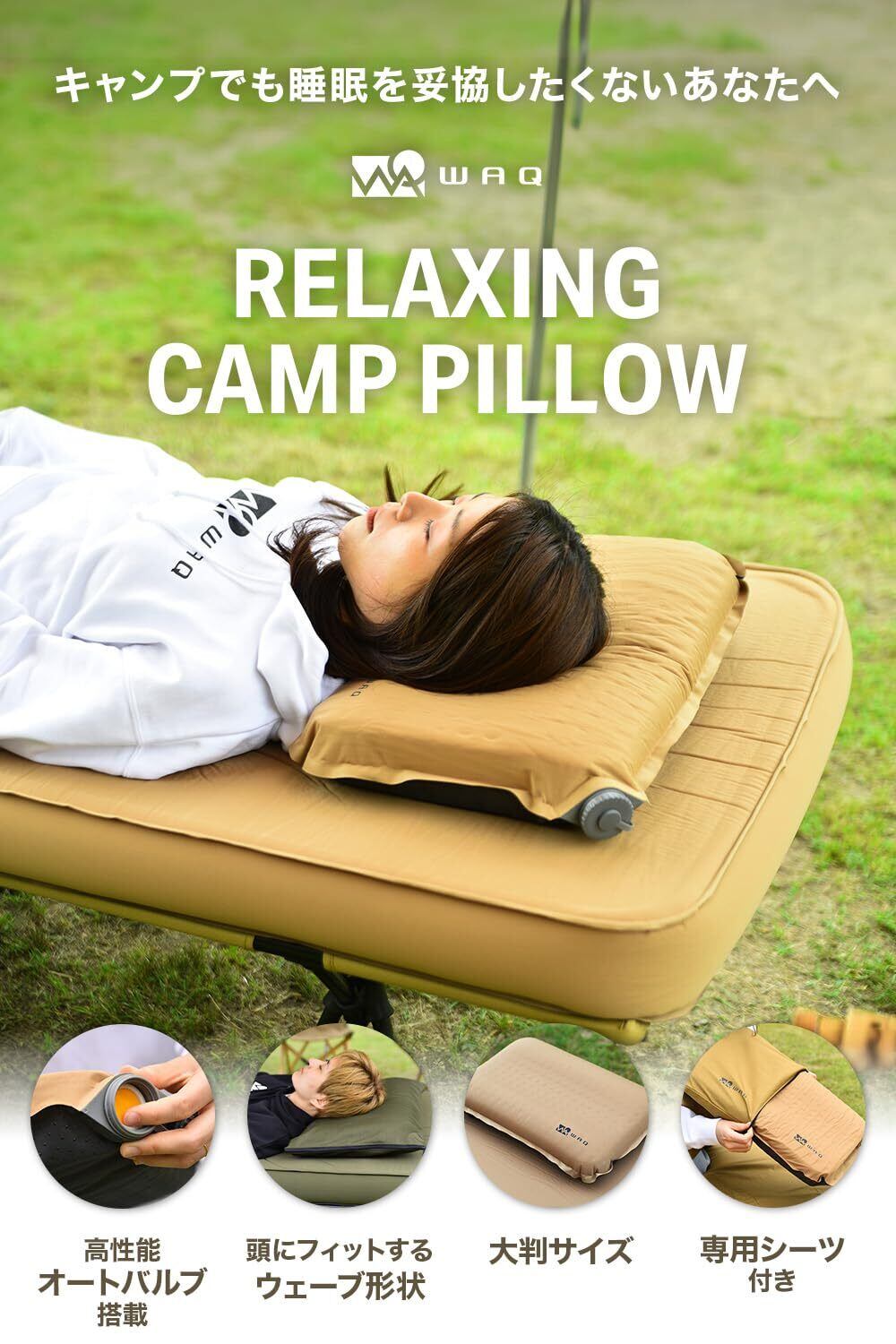 WAQ RELAXING CAMP PILLOW waq-rcp1 キャンプまくら 車中泊 ウレタン インフレータブル 枕