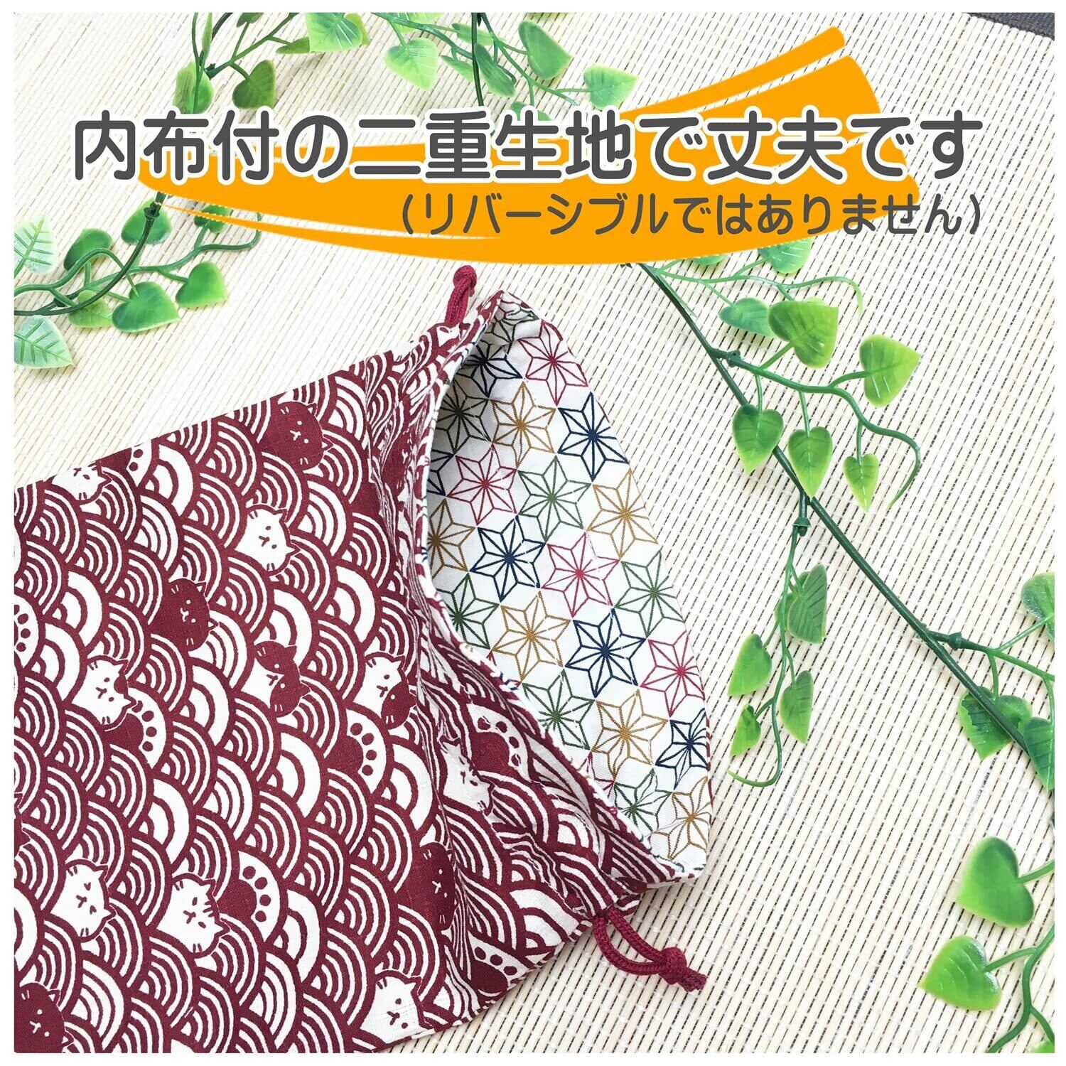 内布(裏地)付で二重生地で丈夫です。内布もかわいい和柄になつています。(リバーシブルではありません)猫柄巾着です。