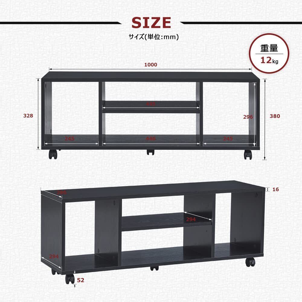 テレビ台 キャスター付き テレビボード ローボード 幅1000mm 奥行296mm 高さ380mm 24型 32型 46型 移動式 (ブラック)