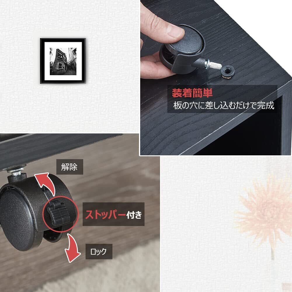【移動楽々】キャスター付きでお掃除や模様替えの際に楽々移動できます。前方二つのキャスターにはロック機能を搭載し、固定位置にしっかりと止めてくれます。また、キャスターの装着が簡単で、直接に穴に差し込むだけでOK!