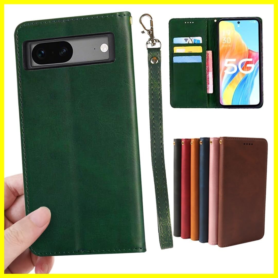 適用 Google Pixel 7A ケース 手帳型 PUレザー ストラップ 同梱 カード収納 スタンド機能 耐衝撃 グーグル ピクセル7A スマホケース 手帳 Pixel7A case カバー 財布型 内蔵マグネット 弱磁 ストラップホール 携帯カバー レトロ グリーン