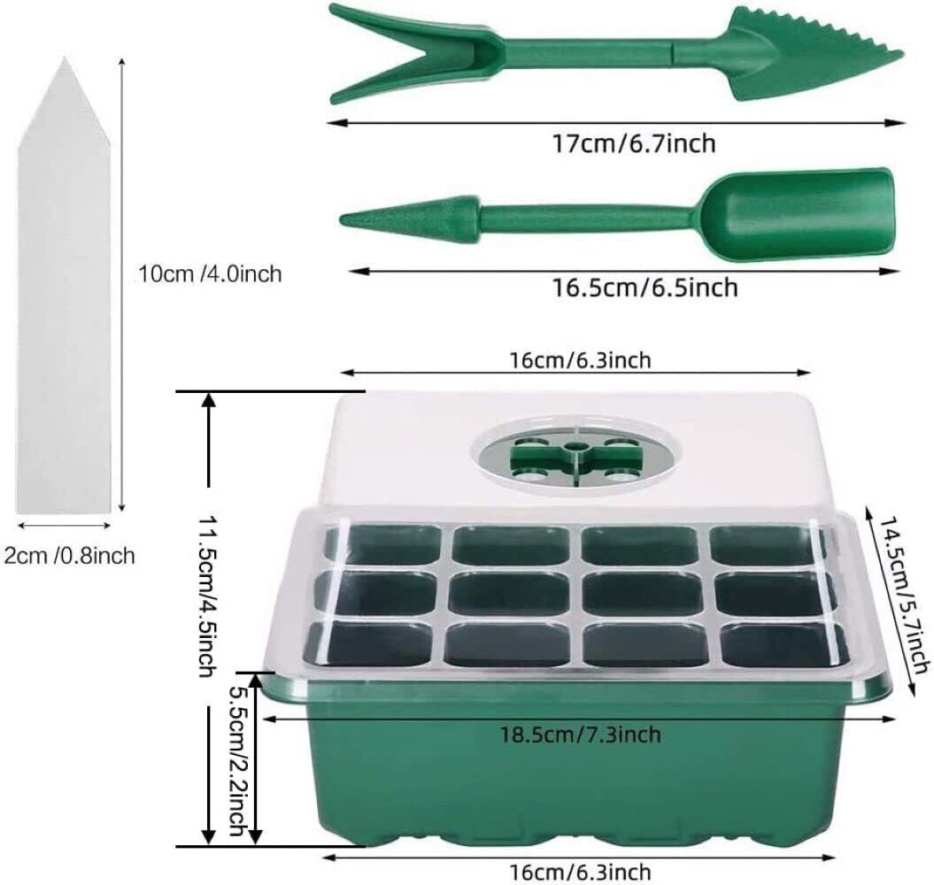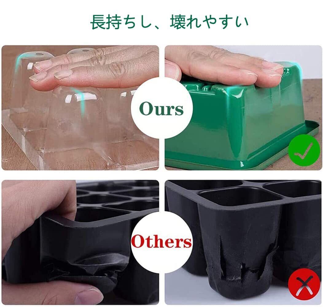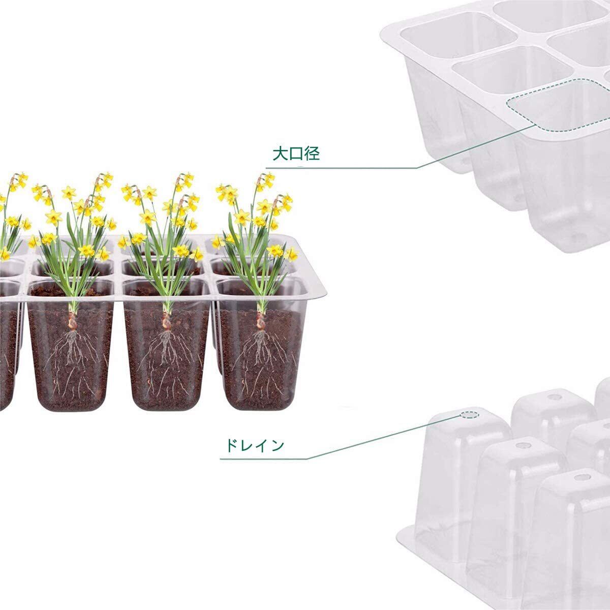 【サイズ】:育苗ポットサイズ:19 x15 x 11.5 cm、植物の成長に適していることを確認してください。パッケージには、5個の12ユニットトレイ、10個の植物ラベル、1つの穴あけツール、1つの移植ツールが含まれており植物種の区別、苗の移植を支援することができます。