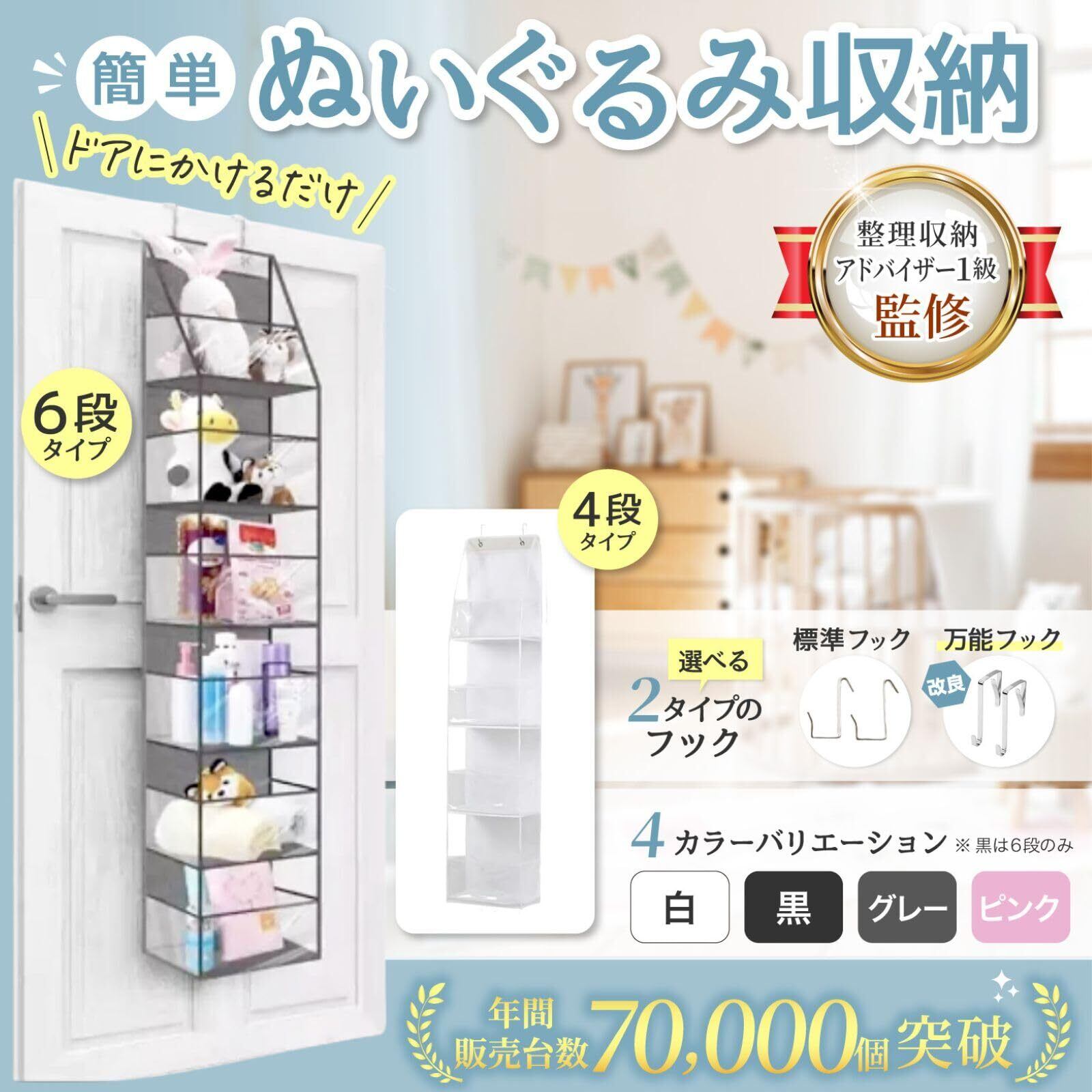 【床のぬいぐるみを一掃、部屋が広くなる】広々ポケットを採用し、4段タイプで最大約32個、6段タイプで最大約48個を収納可能です。 ※簡易梱包にて出荷します。