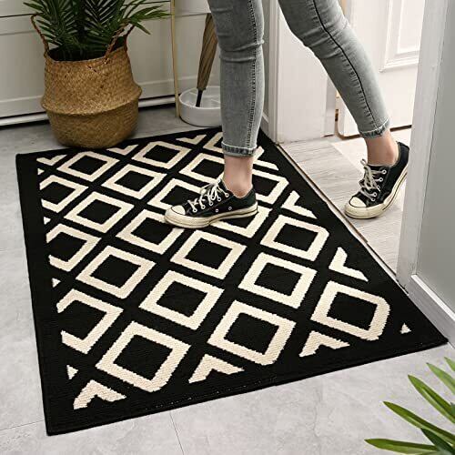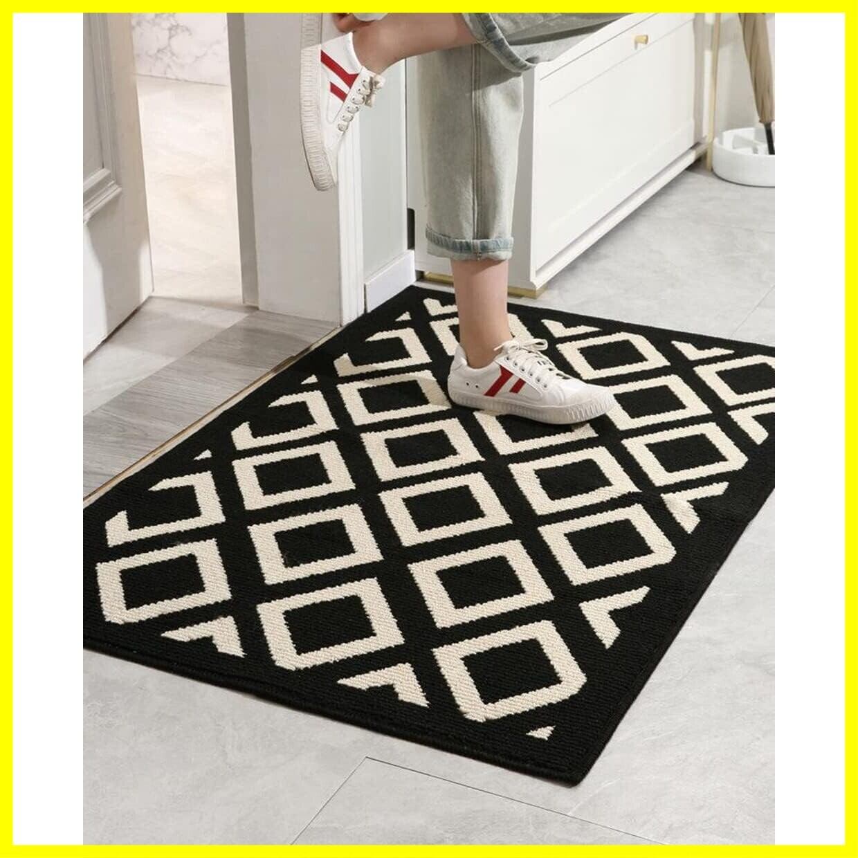 玄関マット ドアマット カーペット 室内 屋外マット おしゃれ シンプル 泥落としマット 泥除けドアマット 泥落とし 泥除け 砂落とし 洗える 滑り止め 防音 吸水 業務用 家庭用 店舗 オフィス 事務所 庭 50x80cm ブラックxベ一ジュ