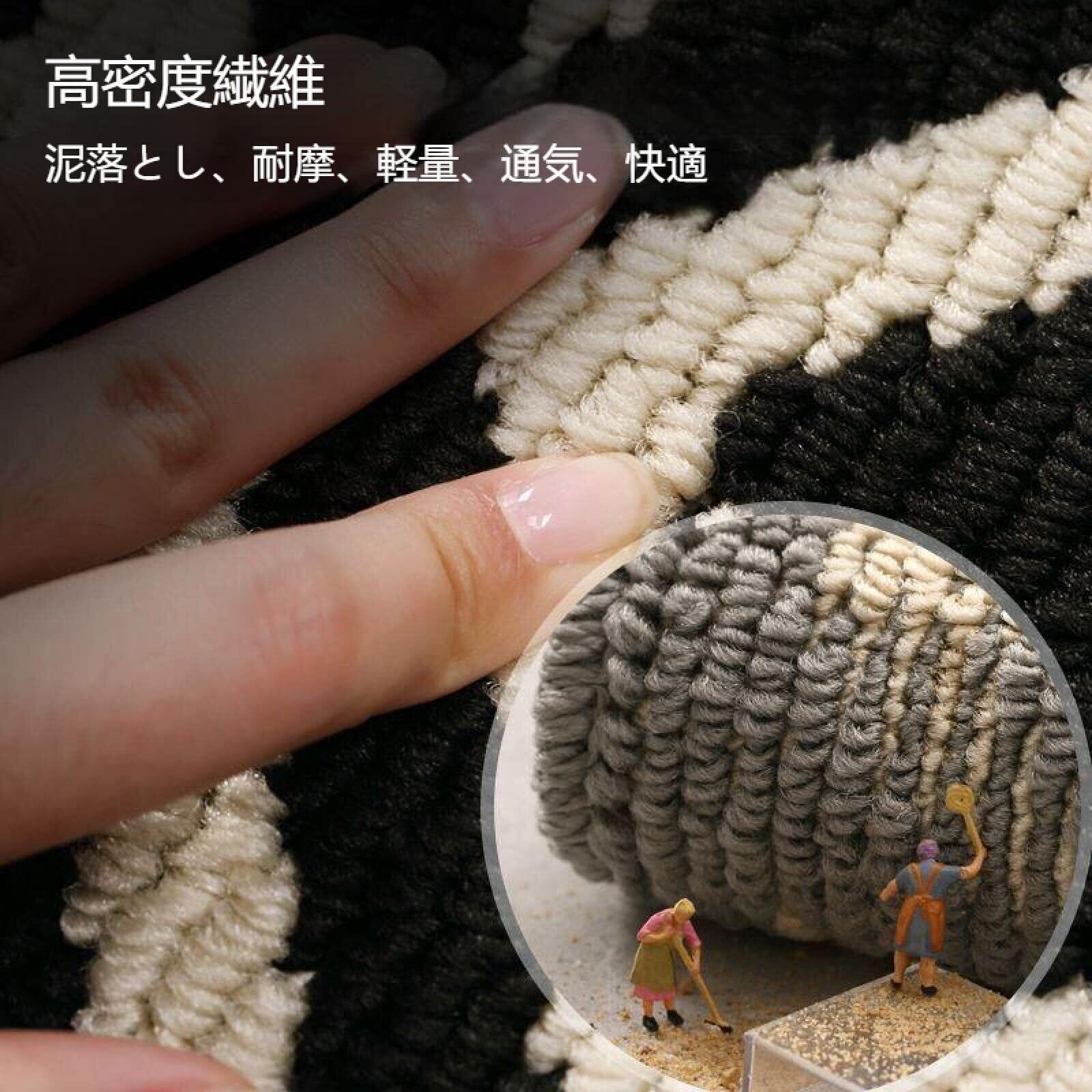 【高品質素材】表面:ポリプロピレン繊維、裏面:TPR滑り止めラテックス。玄関マットは高品質材料を使って、丈夫で、踏み心地もよし、耐磨耗性、耐久性、吸水性、色落ちなし、毛も落としにくいです。ドアマットの表地毛が短くて密度しっかりしています。サイドもロック加工で丁寧に仕上げています。寒い時期にヒンヤリことなく、夏にはさらさらで快適、一年中使える。