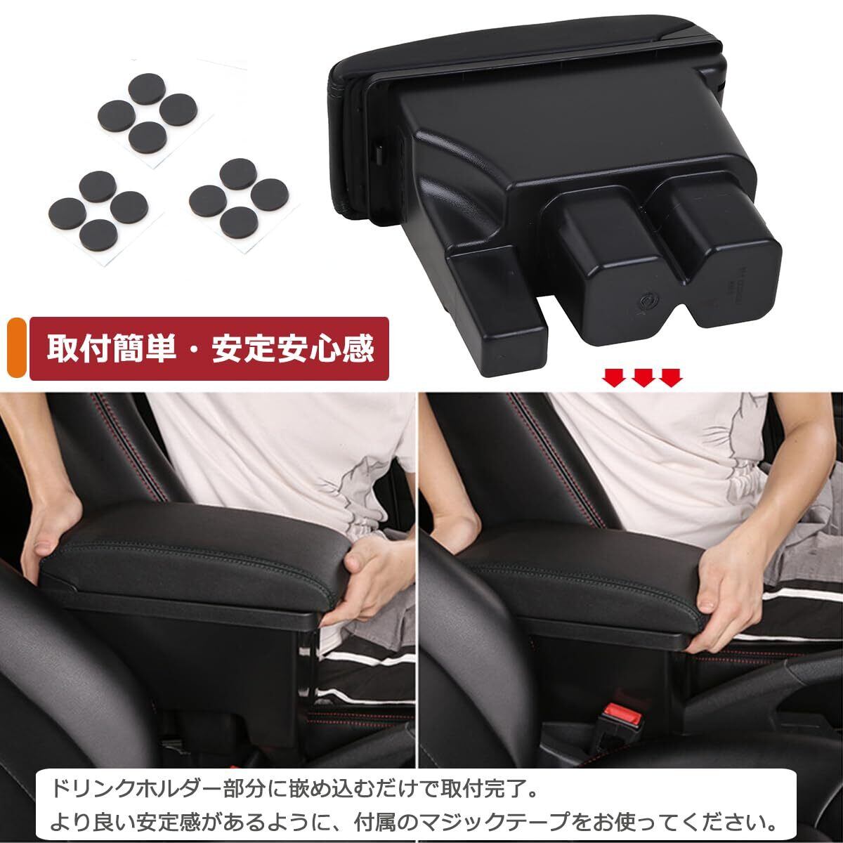 【取り付け簡単】センターカップホルダー部分に差し込めば装着するだけなので、誰でも簡単に取り付けることができます。複数の丸いマジックテープも付属され、より良い安定感をお持ちますように、取り付け部分にてマジックテープをお使って、しっかり固定できます。