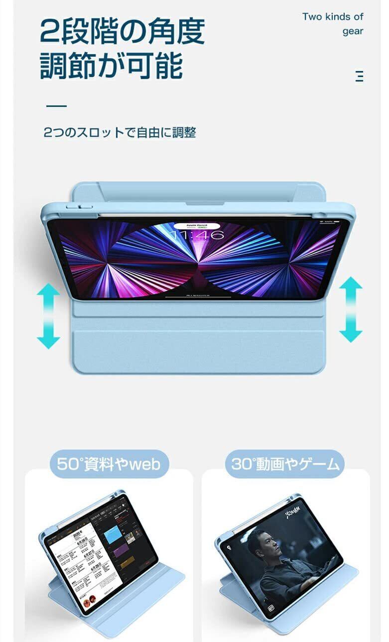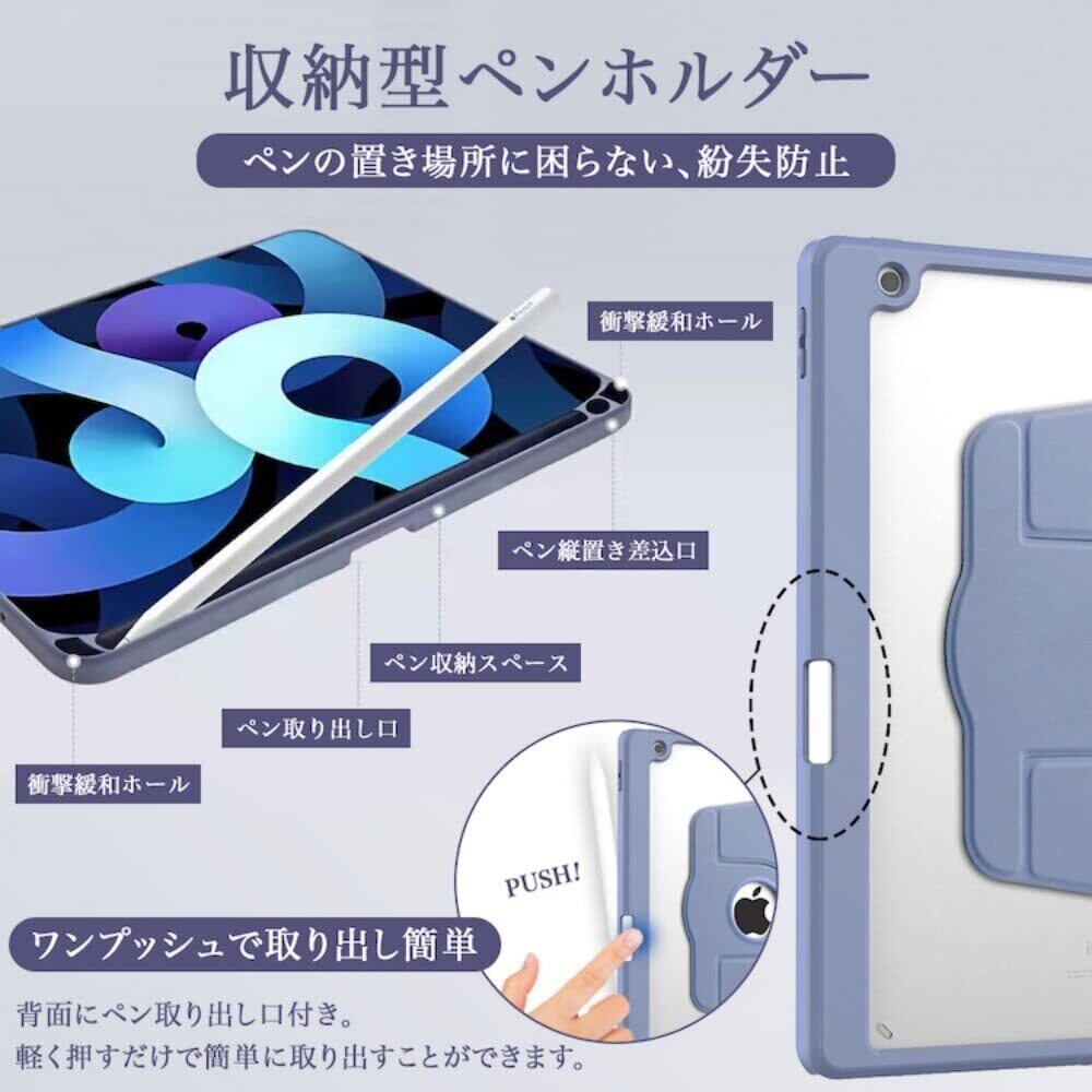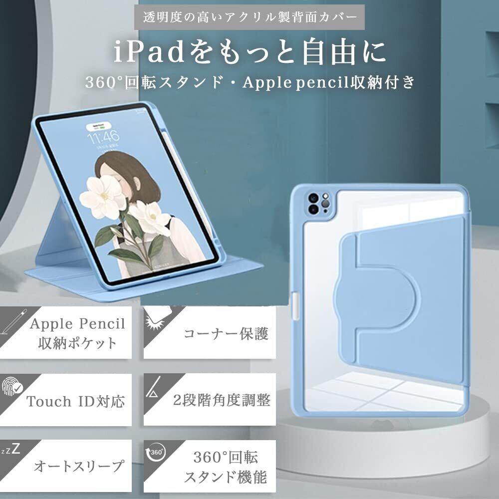 iPad air 11インチ (M3/M2、2025/2024)/ iPad Air 第5世代 ケース 2022 ペンシル収納 iPad Air 第4世代 ケース 2020 10.9インチ iPad Pro 11 (2022/2021/2020モデル) ケース Pencil 収納可能 Apple Pencil 2 ワイヤレス充電対応 耐衝撃 スマートカバー 360°回転スタンド 背面クリア