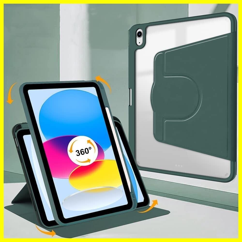 360°回転 iPad Air 11インチ (M3/M2)/Air 第5/4世代 ケース 縦置きスタンド 背面クリア アップルペンシル収納 iPad Air7Air6 Air5 Air4 pro11 2022 透明 ケース かわいい ペン収納 耐衝撃 軽量 薄型,ダークグリーン
