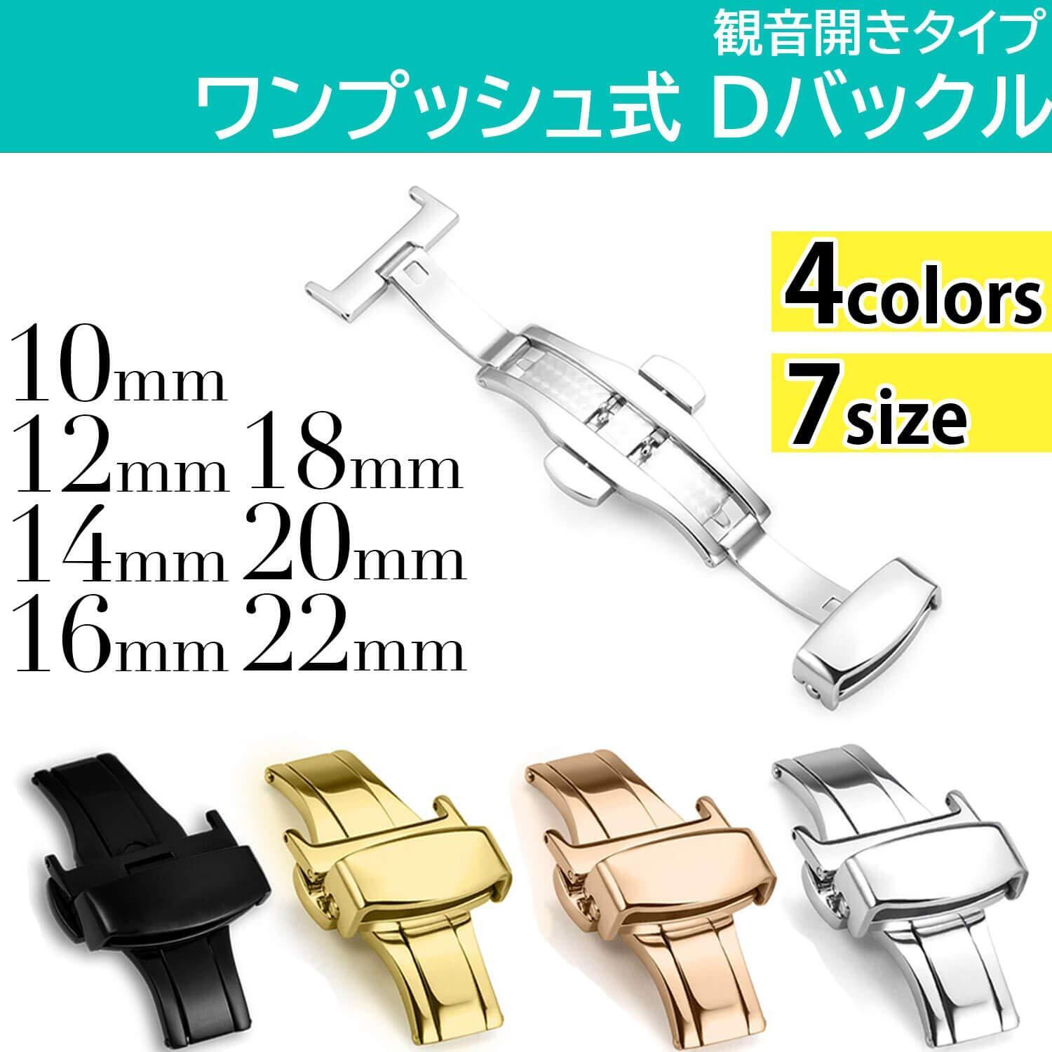 腕時計 Dバックル プッシュ式 観音開き 尾錠 4色 10mm 12mm 14mm 16mm 18mm 20mm 22mm (10mm, ブラック)