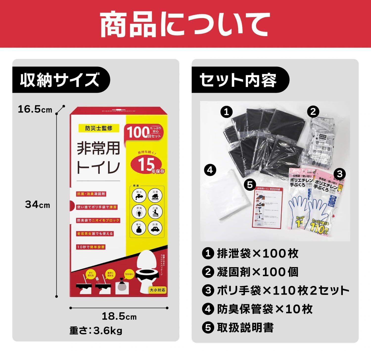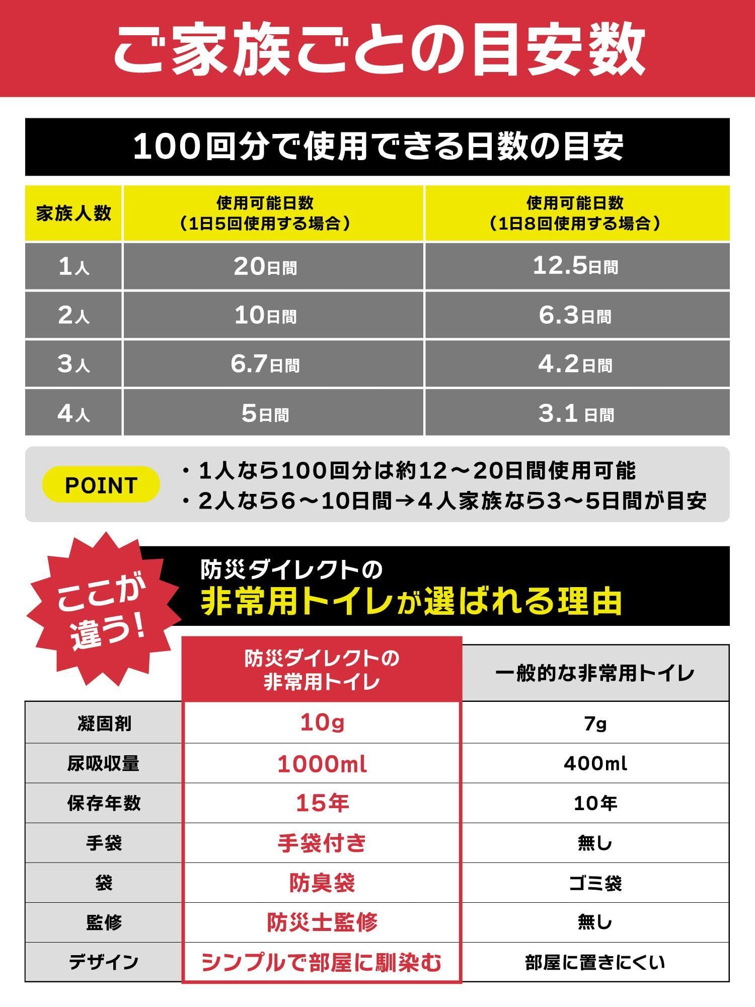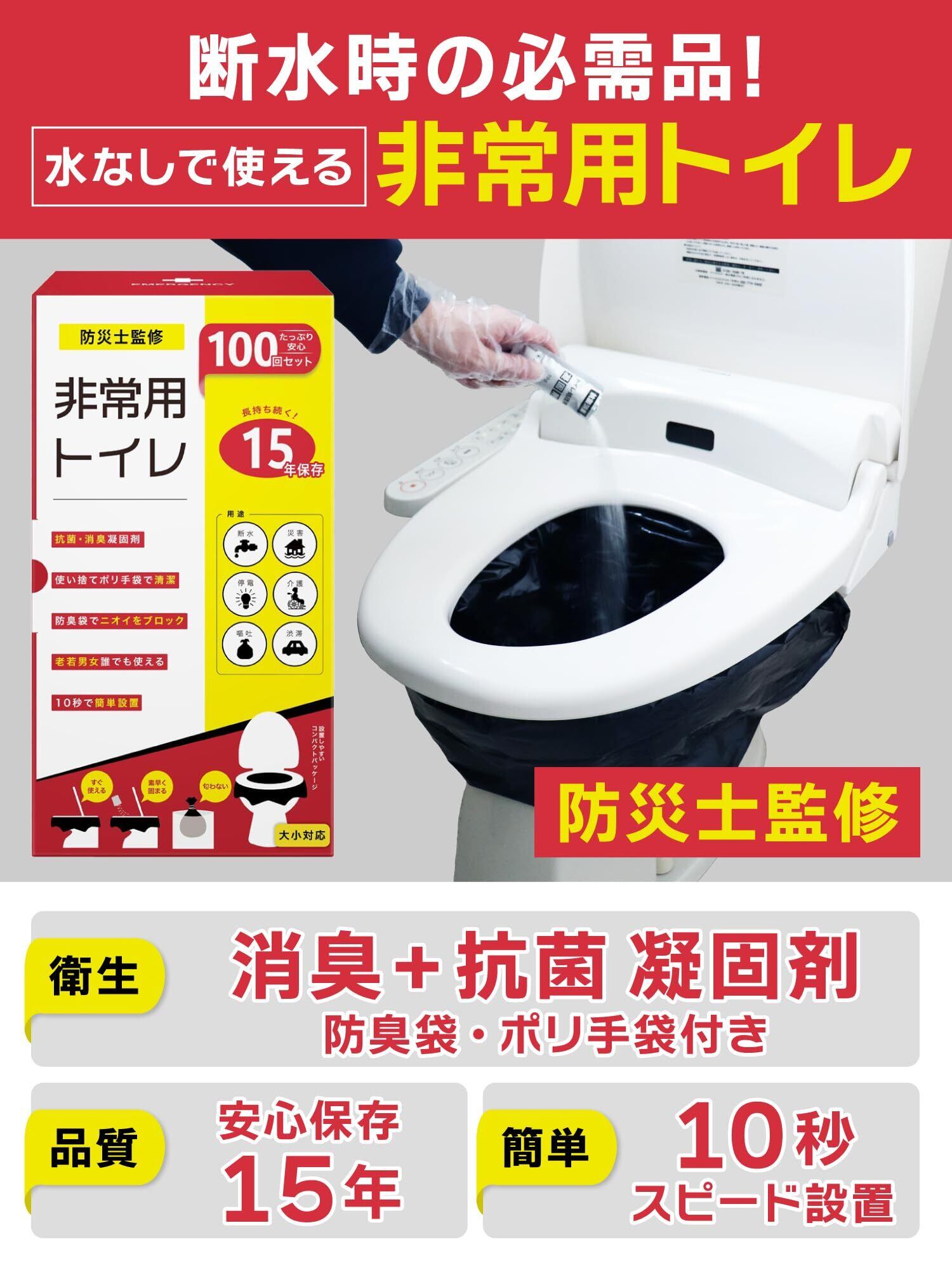 非常用トイレ100回分セット 簡易トイレ 15年保存 消臭・抗菌凝固剤 ポリ手袋 防臭袋 10秒スピード設置 大小対応 断水対策 携帯トイレ 防災グッズ 防災ダイレクト
