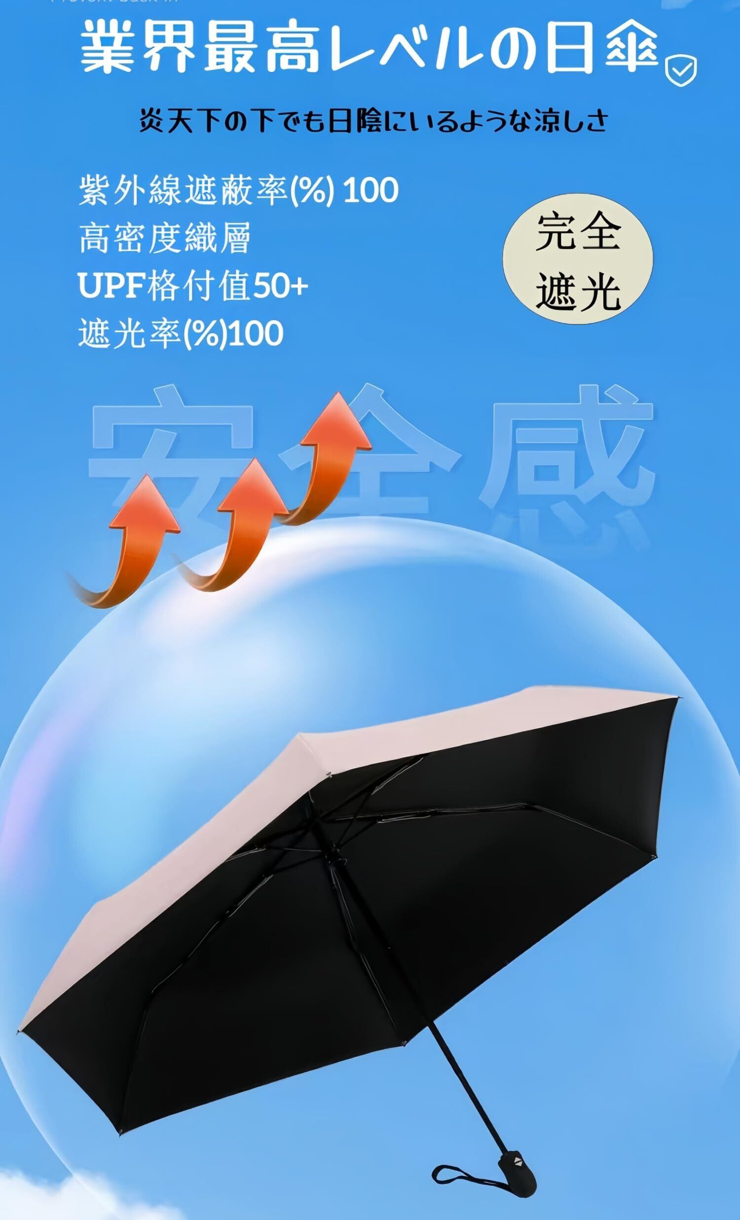 日傘 超軽量 227g ワンタッチ自動開閉 折りたたみ傘 【皮膚科医監修 国際検査機関・UPF50+認証済み】完全遮光 遮熱 UVカット 耐風撥水 晴雨兼用 メンズ レディース 携帯便利 折り畳み傘