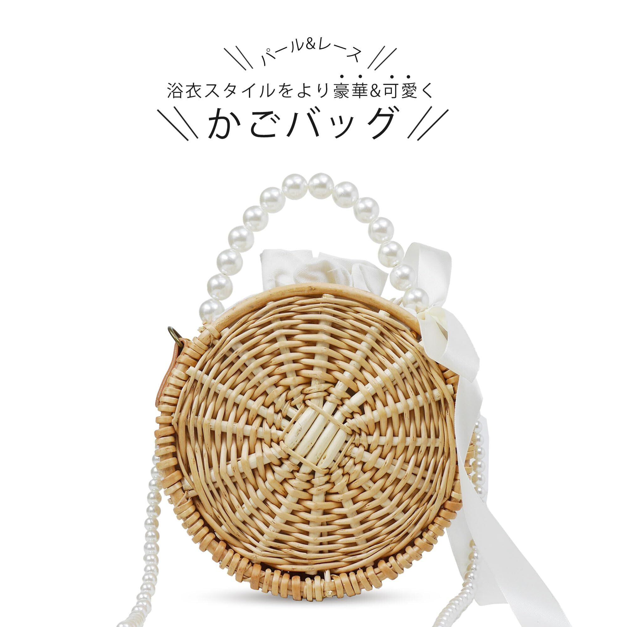 [NISHIORI] パールとレースがかわいい かごバッグ 巾着 選べるタイプ モノトーン デザイン 白 植物素材 インナー巾着仕様 浴衣や夏の着物に最適 浴衣や夏の着物に