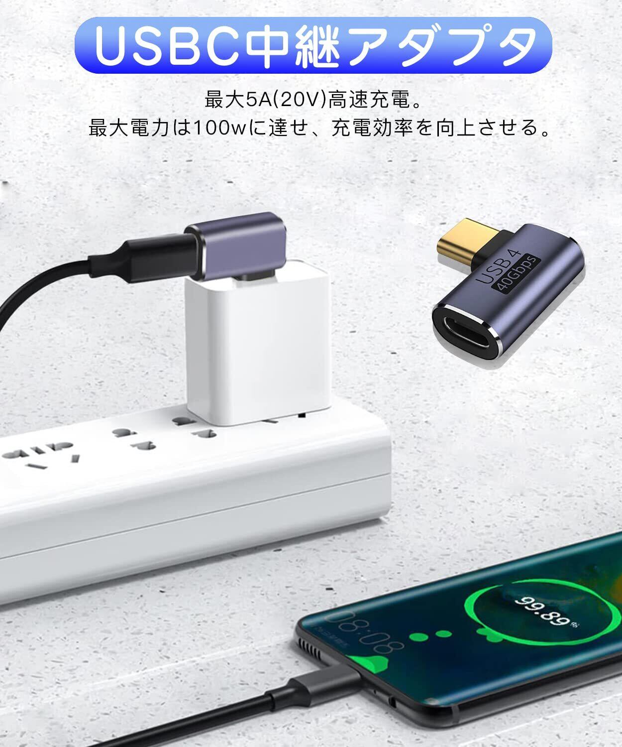 USB4.0 Type C 変換 アダプター 曲げ3種類セット 左右 90° L字 L型 40Gbps高速データ転送 PD 100W/5A急速充電 8K@60Hz映像出力 オス メス USB C コネクター イプc type-c 変換アダプタ スリムデザイン 90度 Mac Book Pro、LG G5 V20などのType Cデバイスに対応 (3種類セット)