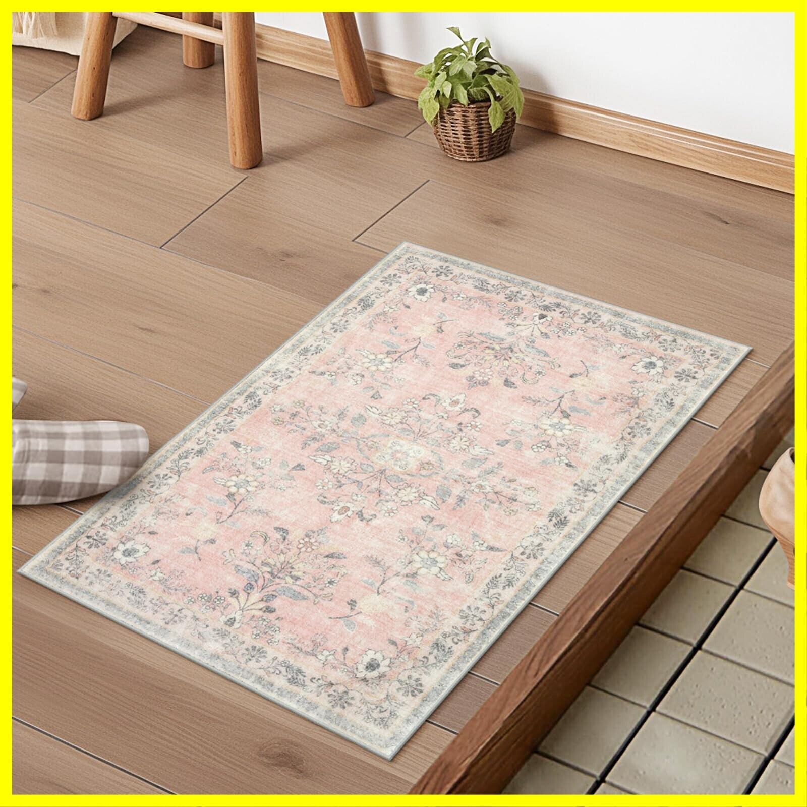 HAOCOO 玄関マット 室内 ペルシャ風 ラグマット 洗える 50х80cm 小さい おしゃれ 長方形 滑り止め 低反発 防音 屋外 泥落とし オールシーズン適用 耐磨耗性 軽量 花柄 コーラルピンク
