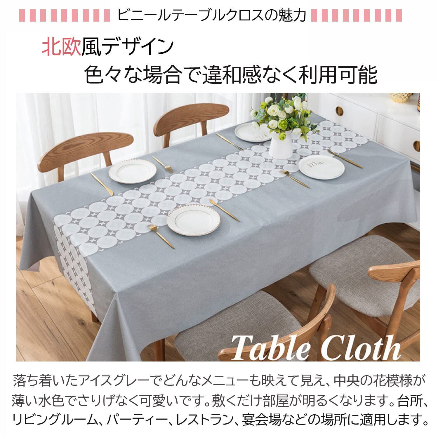 良質ポリ塩化ビニール素材:無毒無味PVC素材を採用し、PVC特有の化学臭いが最大限に薄くなり、こどもや老人が安心にご利用いただけます。防水、防油、汚れ防止、浸透しにくい多機能テーブルクロスです。