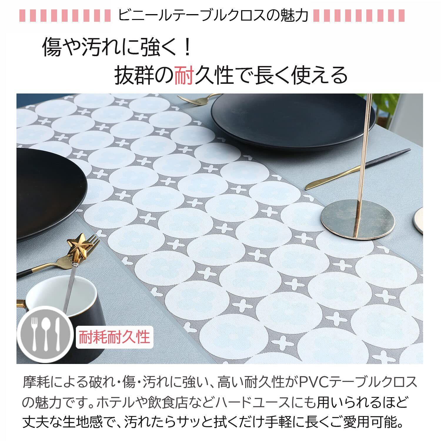 お手入れ簡単:防水防油防カビの機能付き、洗濯の必要がありません。汚れたら、雑巾で拭き取るだけで、お手入れ簡単です。いつでも食卓の清潔に保つことができます。